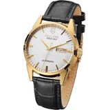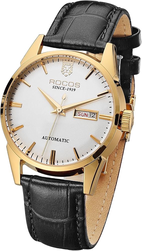 وراثة التقليد الكلاسيكي: ساعة ميكانيكية أوتوماتيكية مصممة مستوحاة من موديلات الساعات في القرن الماضي. تتطابق العلبة الذهبية مع قرص أبيض ومزينة بعقارب ذهبية، عتيقة وفاخرة. نافذة التقويم والتاريخ عند الساعة الثالثة. الجراب الشفاف، يمكنك رؤية حركة الساعة بوضوح