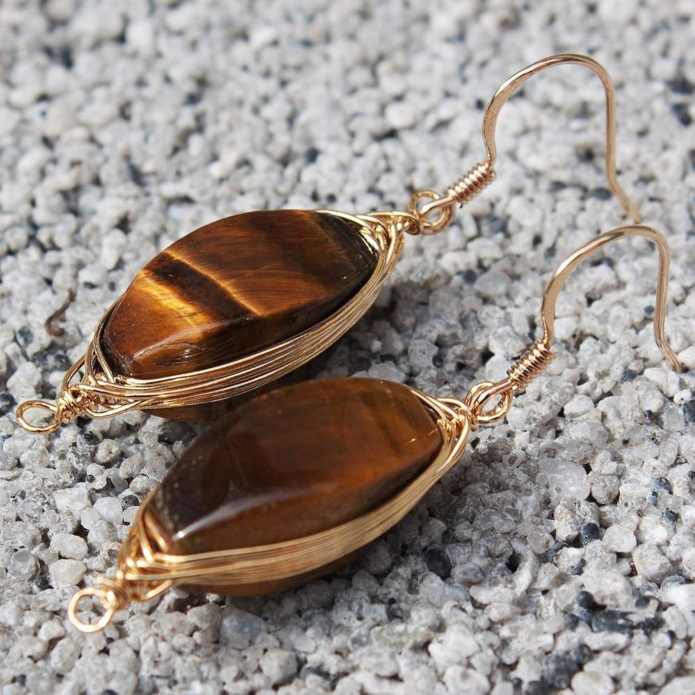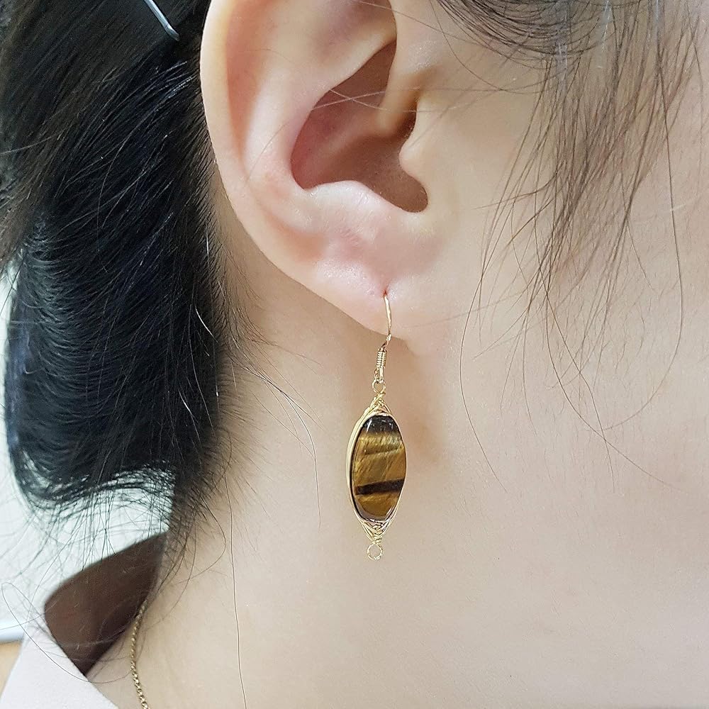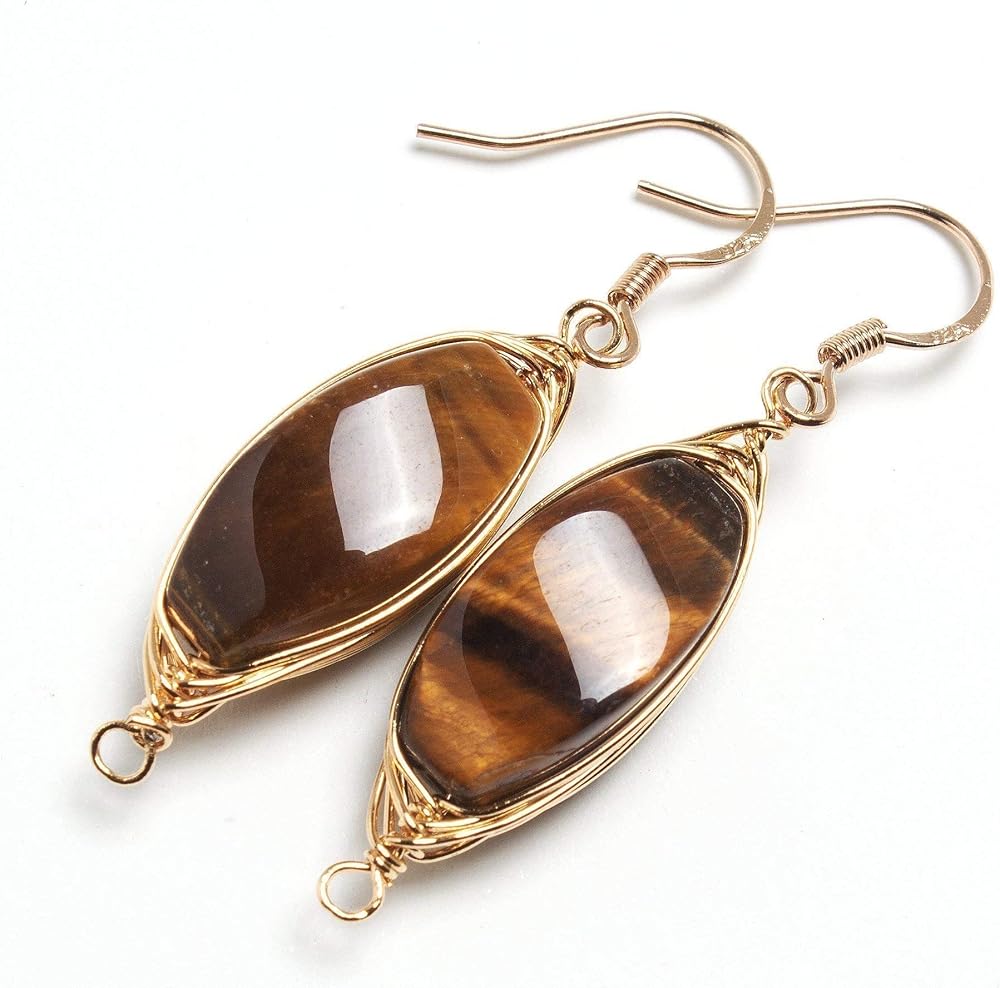 أقراط متدلية من الأسلاك المصنوعة من الحجر الطبيعي مطلية بالذهب عيار 925 من الفضة الإسترليني/عين النمر