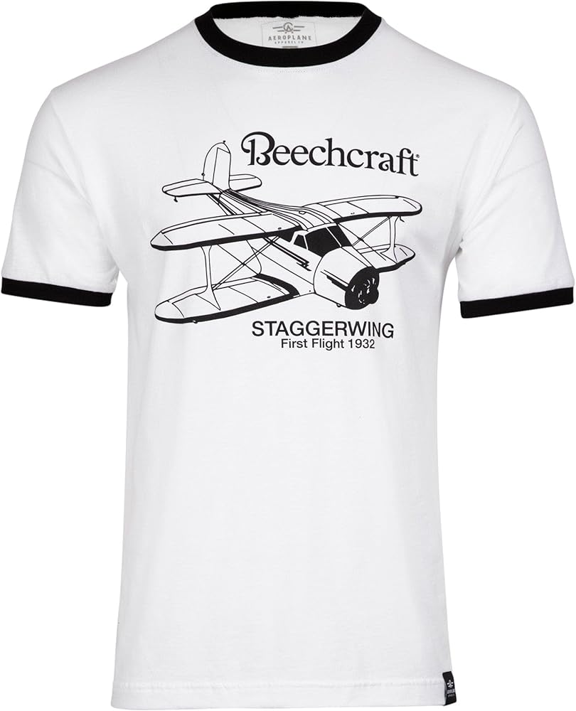 Celebrate our country's rich aviation history and pay homage to the industry's landmark innovations with this Beechcraft Throwback Ringer Aeroplane Apparel Co. Men's T-Shirt . This tee is made of 4.5 oz. pre-shrunk 100% ring-spun USA cotton.