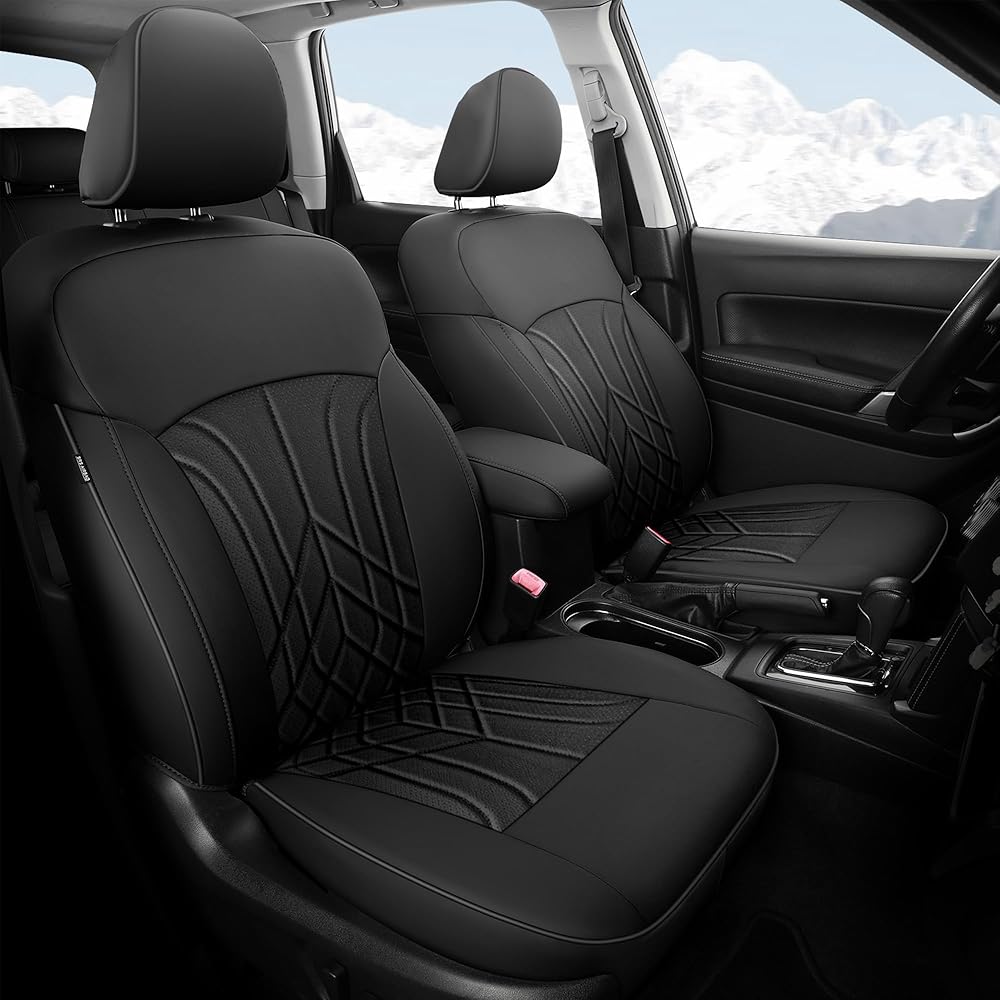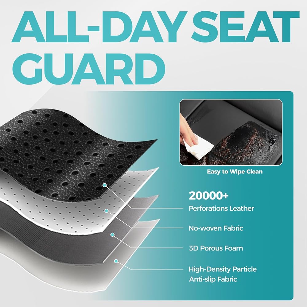 مواد عالية الجودة: مصنوعة من جلد صناعي فاخر مقاوم للماء، توفر أغطية المقاعد هذه متانة وراحة استثنائية. تحافظ المادة المسامية على راحتك طوال العام، بينما تضمن الخصائص المقاومة للماء سهولة التنظيف والصيانة