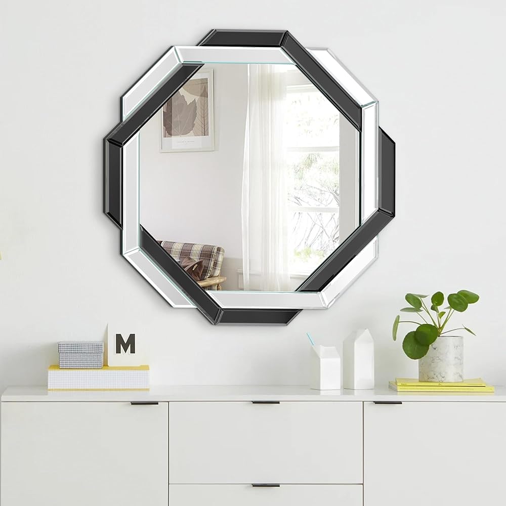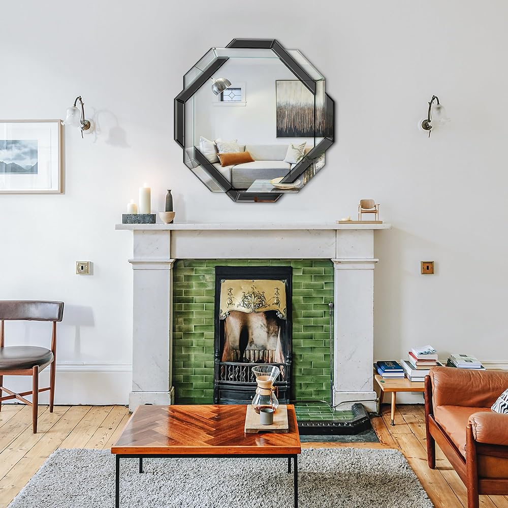 جودة عالية: تستخدم جميع المرايا المزخرفة مرآة زجاجية فضية عالية الجودة بسمك 4 مم، والتي توفر انعكاسًا واضحًا خاليًا من التشوه، وتزيل التشوه العاكس الشائع للمرايا المنخفضة النهاية. تمنحك الصورة الواضحة للمرآة أفضل تجربة بصرية
