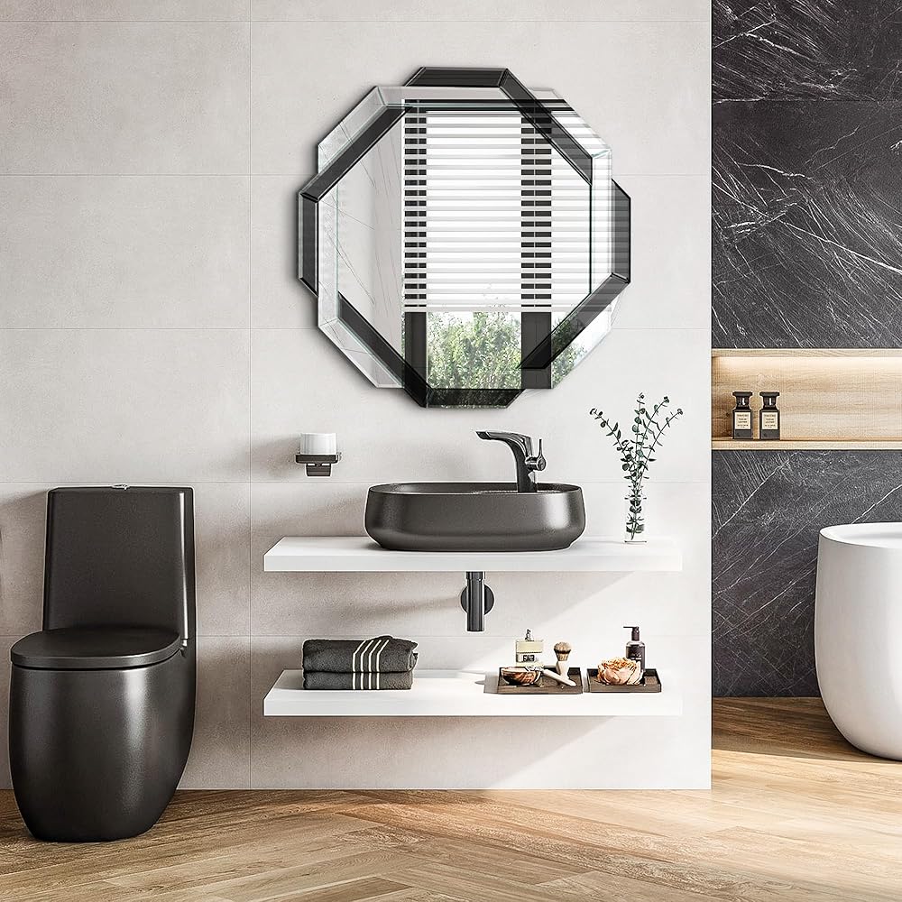 تصميم خاص: مع إضفاء لمسة جمالية على اللمسات المبطنة النظيفة، يوفر مظهرًا أنيقًا. حواف كلاسيكية، بدون إطار، مشطوفة. مرآة الحائط الأنيقة ليست مرآة للحمام فحسب، بل هي أيضًا زينة، مما يضفي انطباعًا شخصيًا على أي منضدة حمام أو غرفة تواليت أو على أي جدار