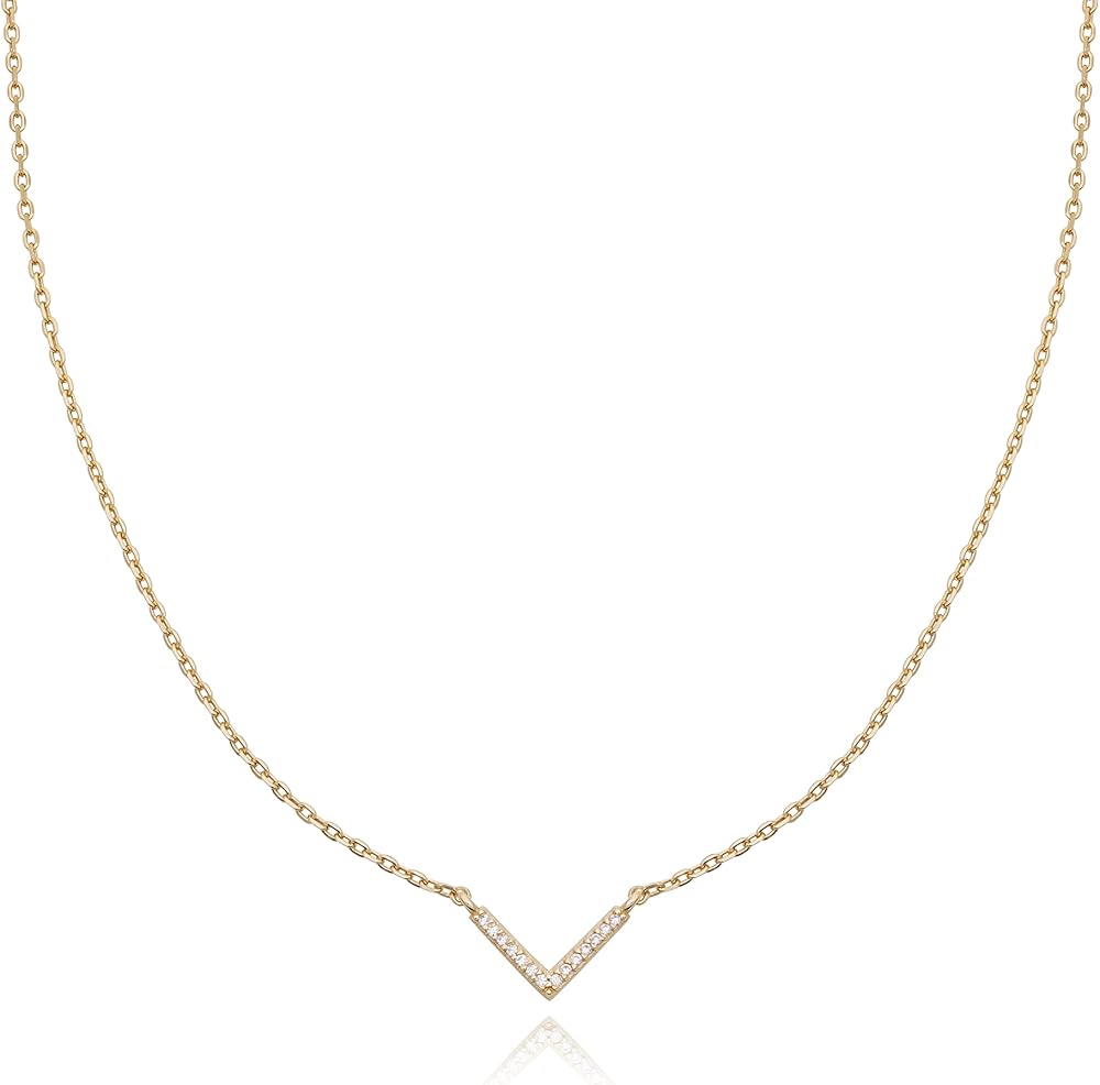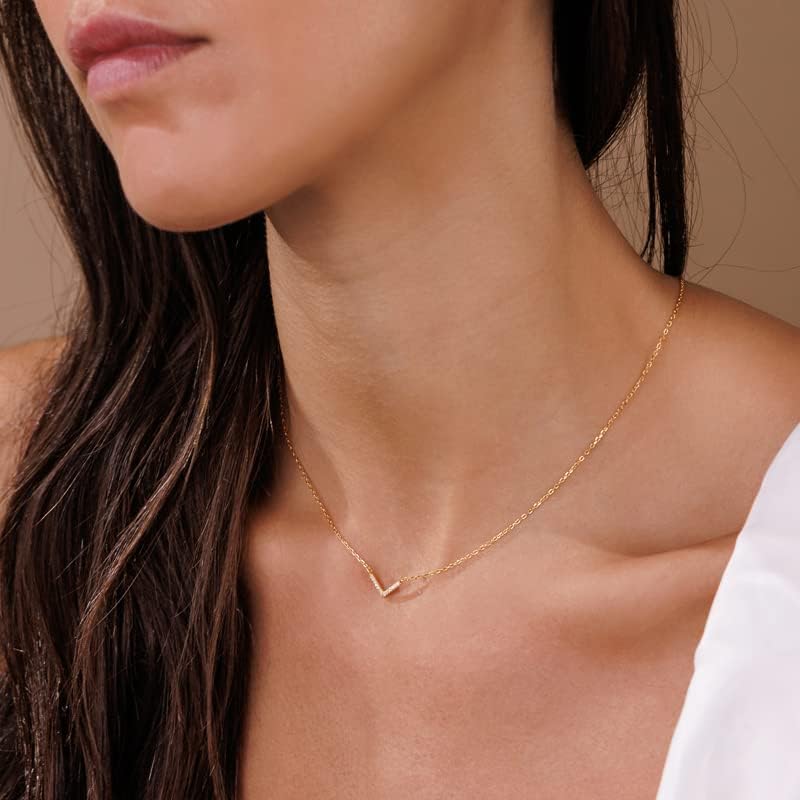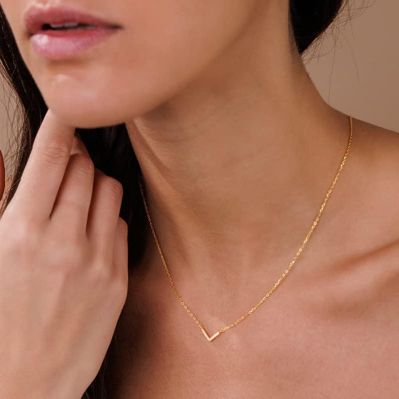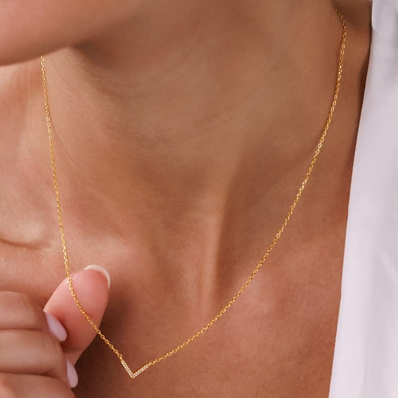 قلادة من الذهب عيار 14 قيراط على شكل حرف V | قلادة مجوهرات مثلث شيفرون | قلادة من الذهب على شكل حرف V مع زركونيا مكعبة | مجوهرات هندسية على شكل حرف V | قلادة داينتي شيفرون عيار 18 قيراط | هدية لها