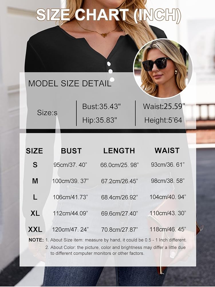 Women's V Neck Tops Long Sleeve Button Down Shirts Henley Dressy Fall Trendy Casual Basic Blouse Tee Outfits