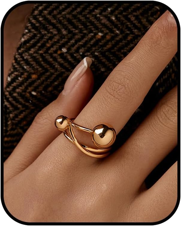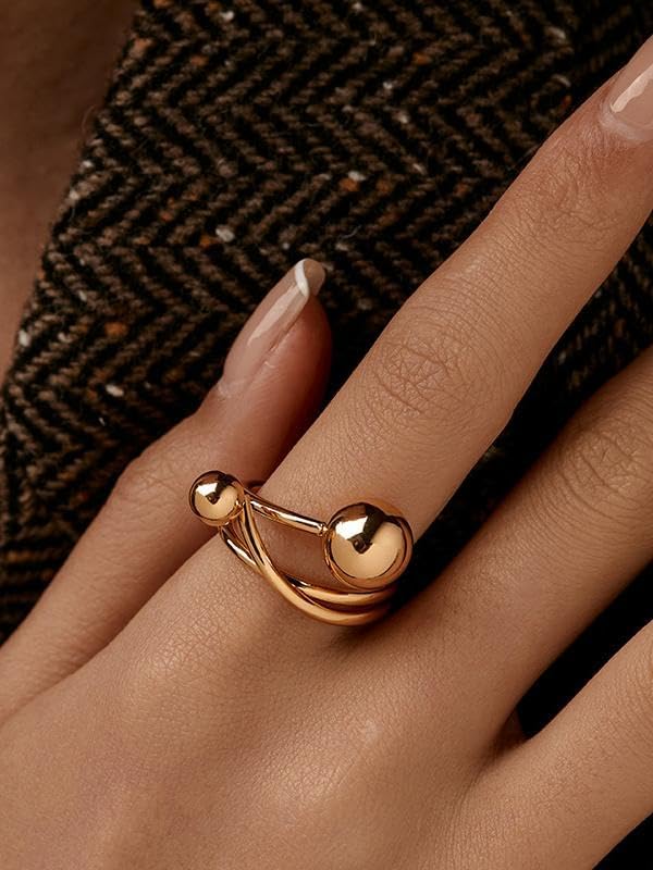 Chunky Gold Rings: The unique adjustable design allows the ring to comfortably fit various finger sizes, providing versatility and ease of wear for everyone