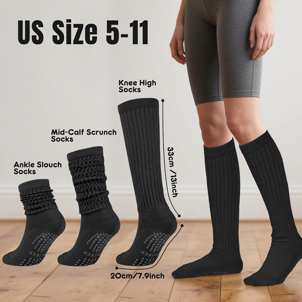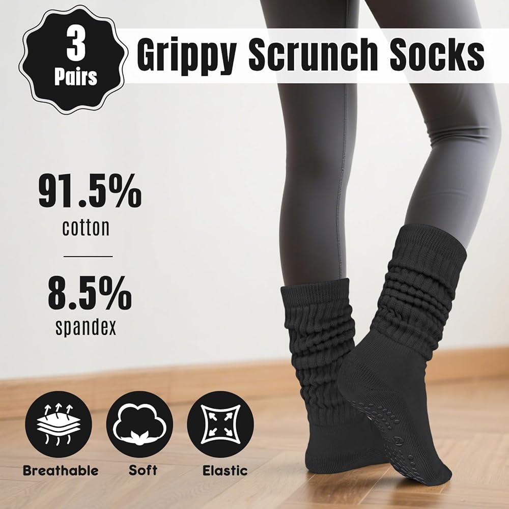 جوارب Grip Slouch: حافظ على ثباتك أثناء التمرينات مع جواربنا المقبضة! تم تصميم هذه الجوارب بنعل منقط من أجل احتكاك فائق، وتساعد على منع الانزلاق
