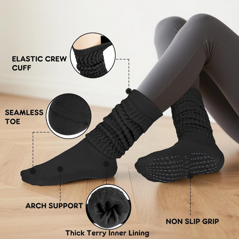 رائع لأي مناسبة: مثالي للتمرينات أو الاسترخاء في المنزل أو حتى الإقامة في المستشفى. توفر هذه الجوارب المقاومة للانزلاق الثبات على الأرضيات الناعمة