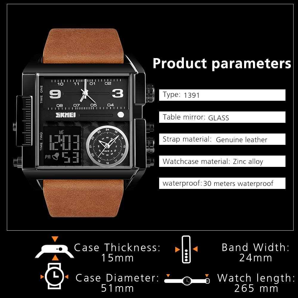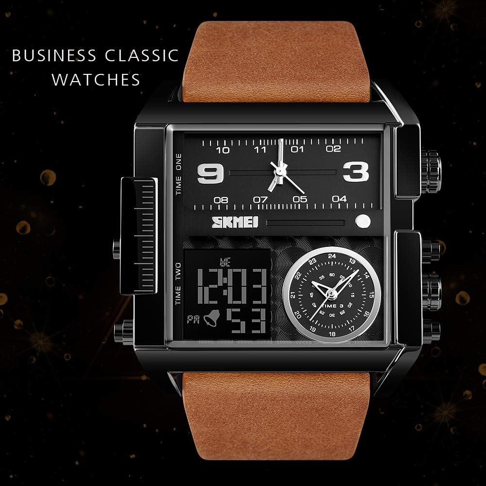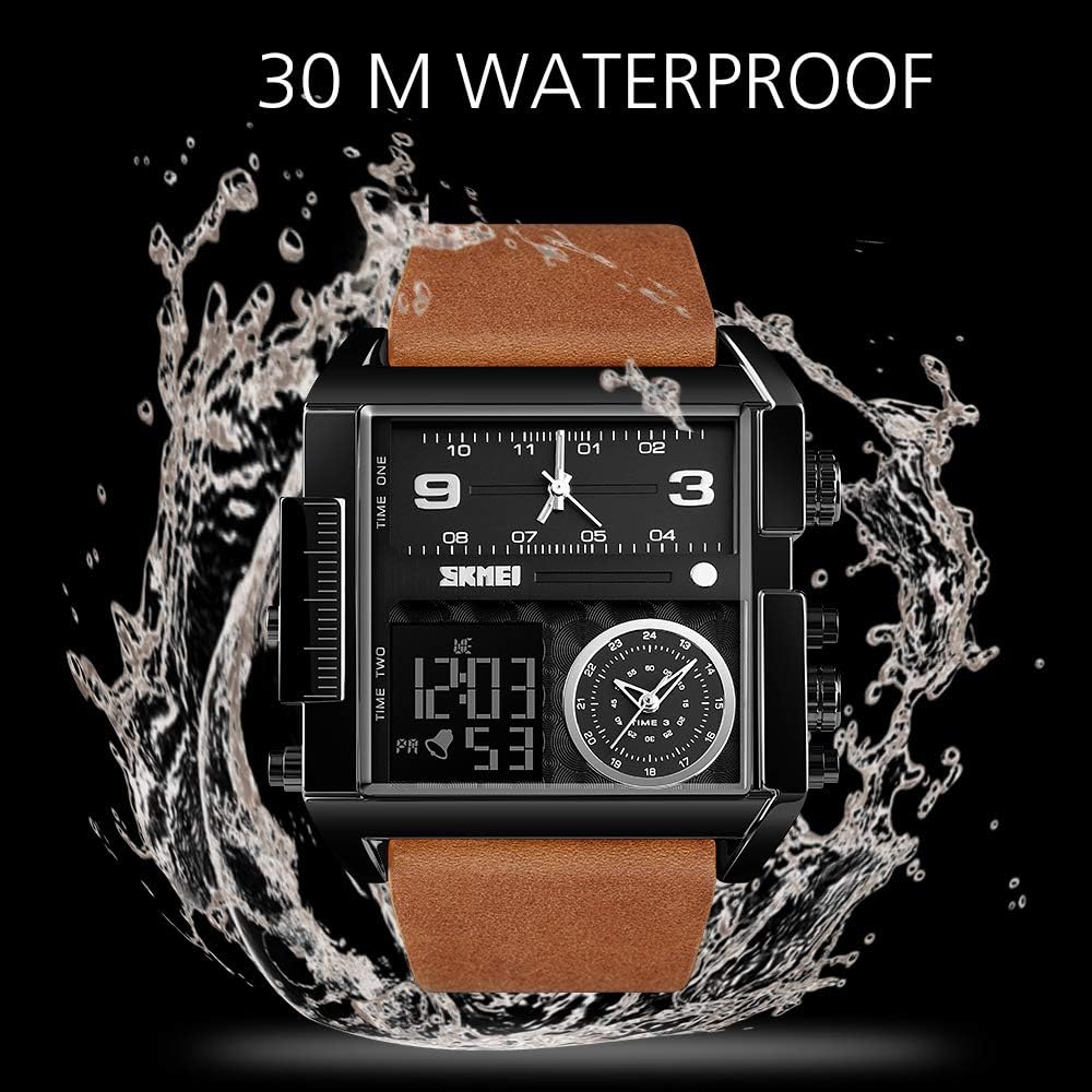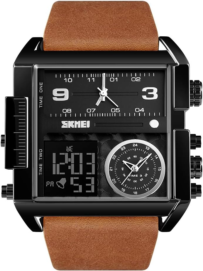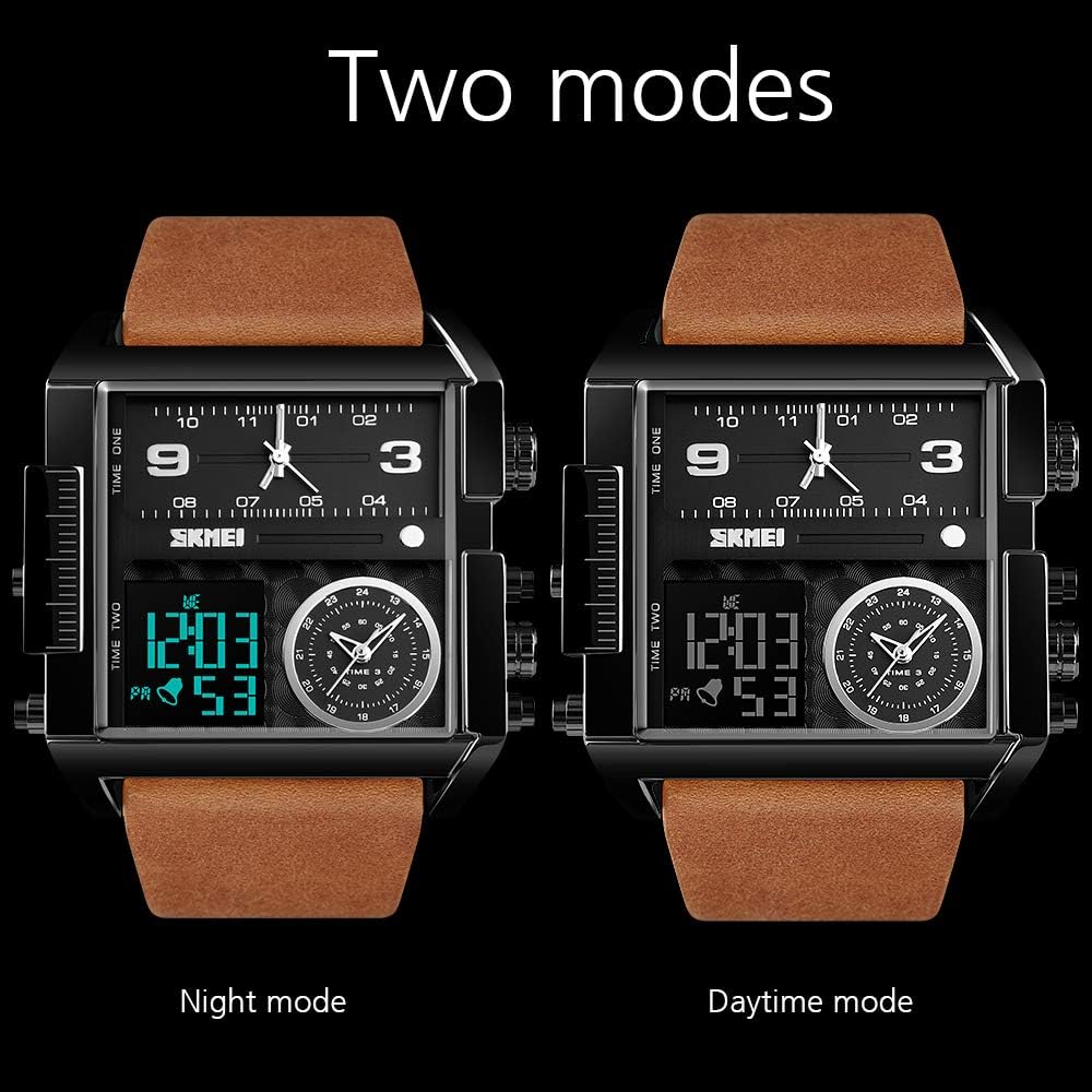 ساعة عسكرية متعددة الوظائف للرجال - أقراص عرض ثلاثية رائعة فريدة من نوعها مع ساعة إيقاف ومنبه وتاريخ وشكل 12/24 ساعة، قرص LED كبير للوجه مع حزام جلدي كلاسيكي أو سوار من الفولاذ المقاوم للصدأ، بسيط وكبير، معبر عن ذوقك الاستثنائي