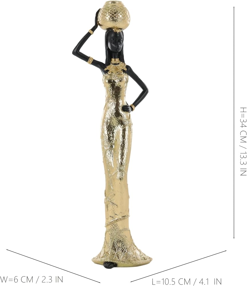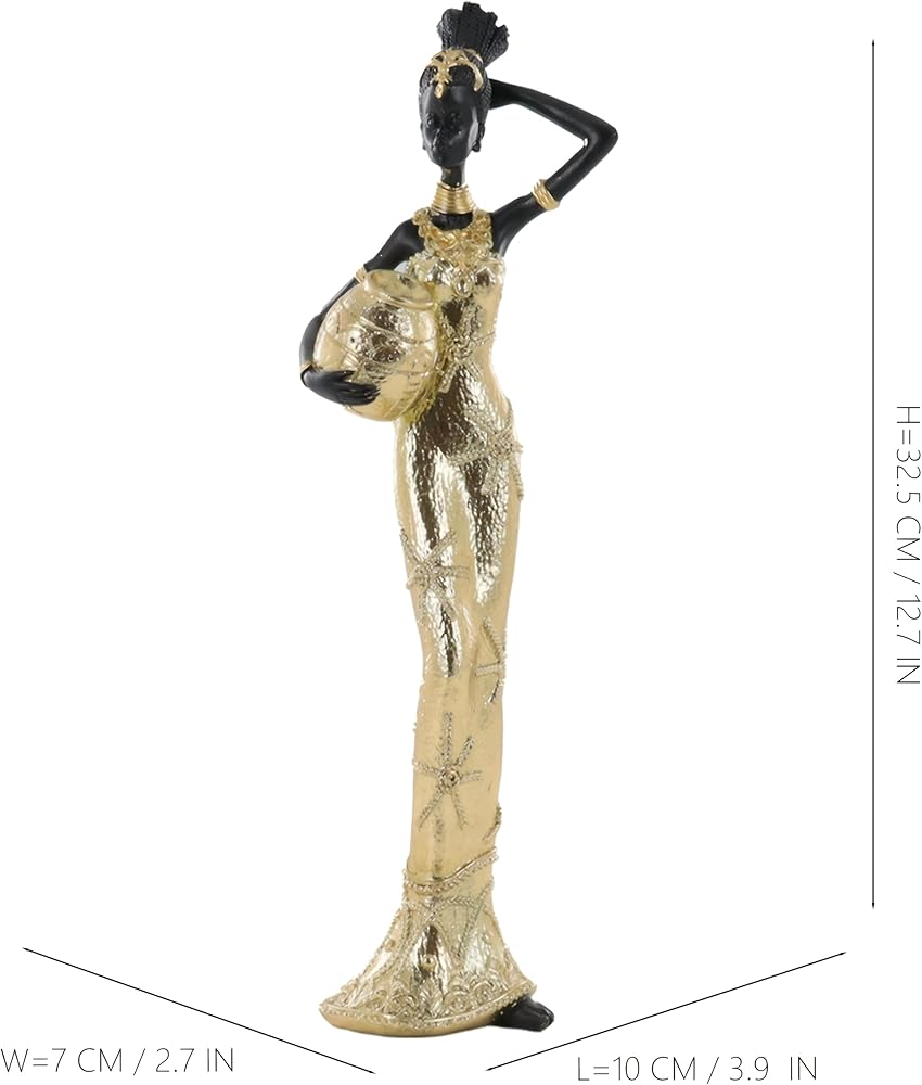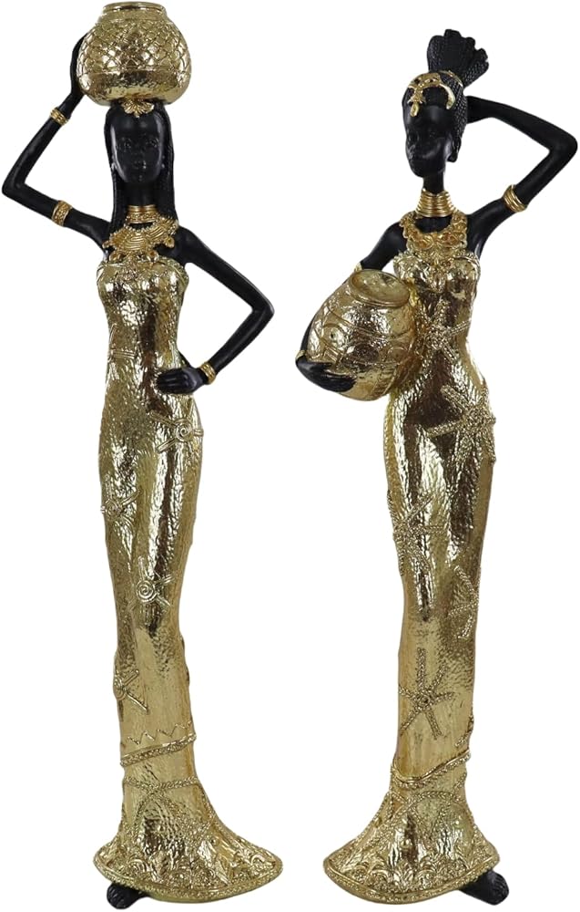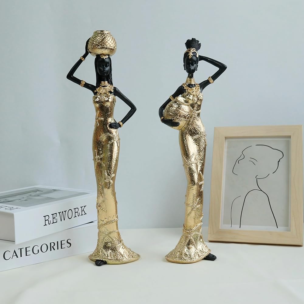 حرفية ذهبية مزخرفة: مصنوعة من الراتنج ثقيل الوزن مع لمسات نهائية ذهبية معدنية، كل تمثال بطول 27.94 سم يتميز بأنماط مرتفعة على الملابس، ويمزج ملامح الوجه المبسطة مع خطوط الجسم السائلة لجاذبية الفن الحديث.