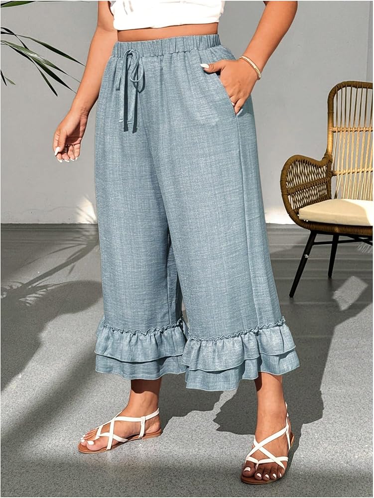 • Cropped Pants for Women, Fashion Capri Pants, Beach Vacation Pants, Going Out Pants, Loose Pants, Elastic Drawstring Waist, High Rise, Slant Pockets