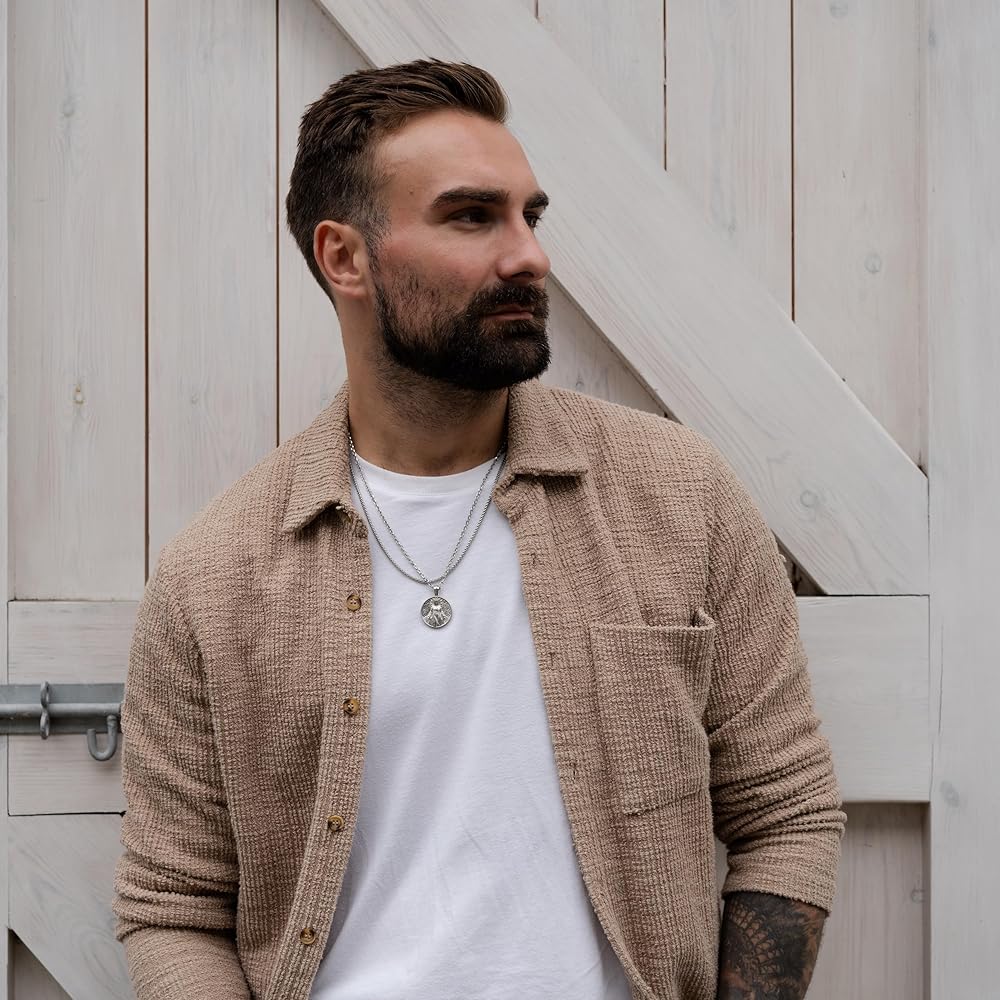 ☑️ مقاس القلادة - مقاس واحد يناسب الجميع. سلسلة رولو مقاس 21 بوصة (سُمك 2 مم) مع وصلة تمديد مقاس 2 بوصة مقاس القلادة - قطر القلادة 1.0 بوصة. الوزن الإجمالي - 0.60 أونصة (سلسلة + قلادة). تم تصميم هذه القطعة للتعليق على مستوى منخفض. تعمل بشكل جيد كقلادة واحدة أو يمكن وضعها مع سلاسل أخرى أقصر. منقوش عليه عبارة "FORGE & FOUNDRY" على الجانب الخلفي من القلادة. [السلسلة متضمنة مع قلادة].