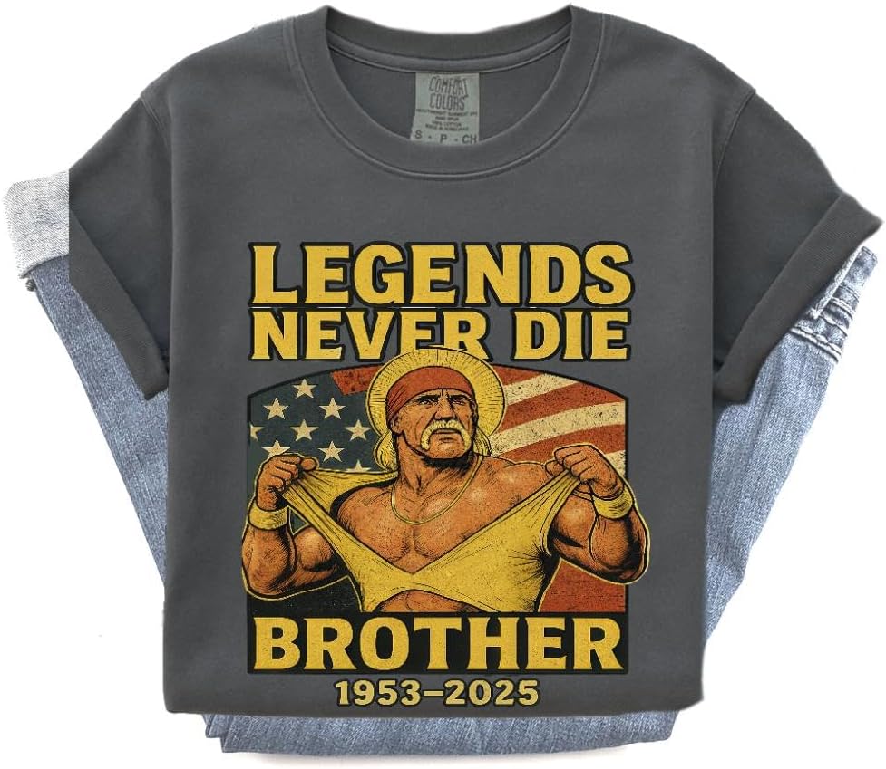 Great Memorial Gift Idea: Pay tribute or gift it to a fellow fan who admired The Hulkster — available in multiple sizes for men, women, and youth.