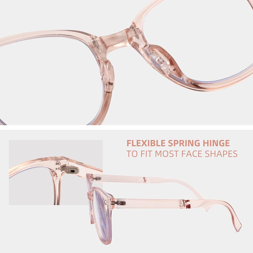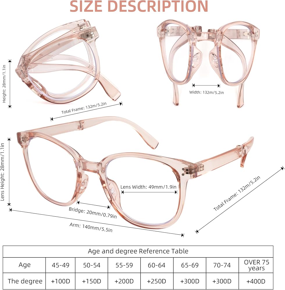 Smooth folding design:The 6 hinges design facilitates the folding of the glasses more smoothly, and at the same time, it can also minimize the size of the glasses and make them easy to carry. Oversized Butterfly Frame Design:With a Oversized Butterfly frame design and clear colorful glasses frames, these glasses keep you looking stylish while you work or play video games. Plus, their oversized lenses make them perfect for reading. They're both fashionable and practical Blue Light Blocking: The blue light blocking glasses use patented lens technology to reduce up to 34% of blue light emitted from computers, laptops, tablets, and smartphones Silicone Nosepiece:Concealed silicone nosepiece design, beautiful, and comfortable, snap-on design, easier to change Scratch and Impact Resistant:reading glasses for womens come equipped with scratch-and impact-resistant polycarbonate lenses for enhanced durability and clearer viewing