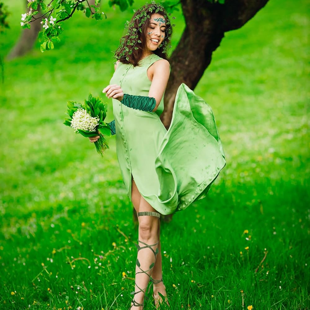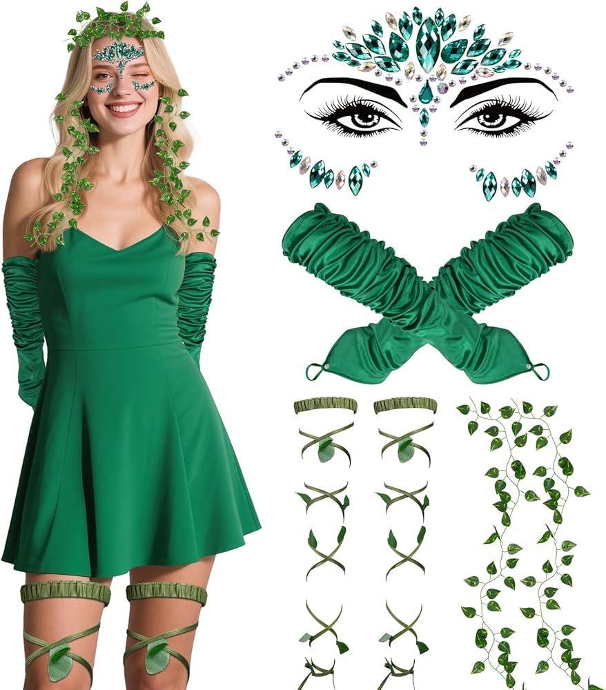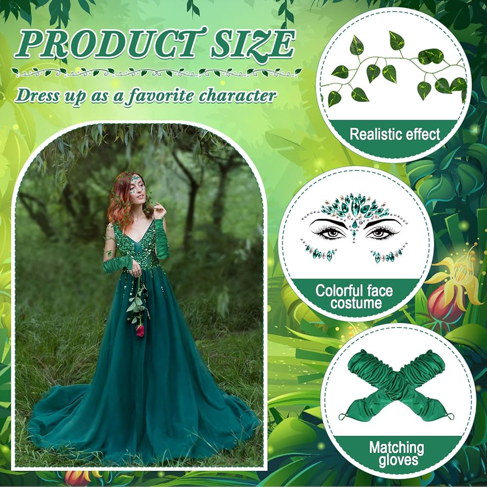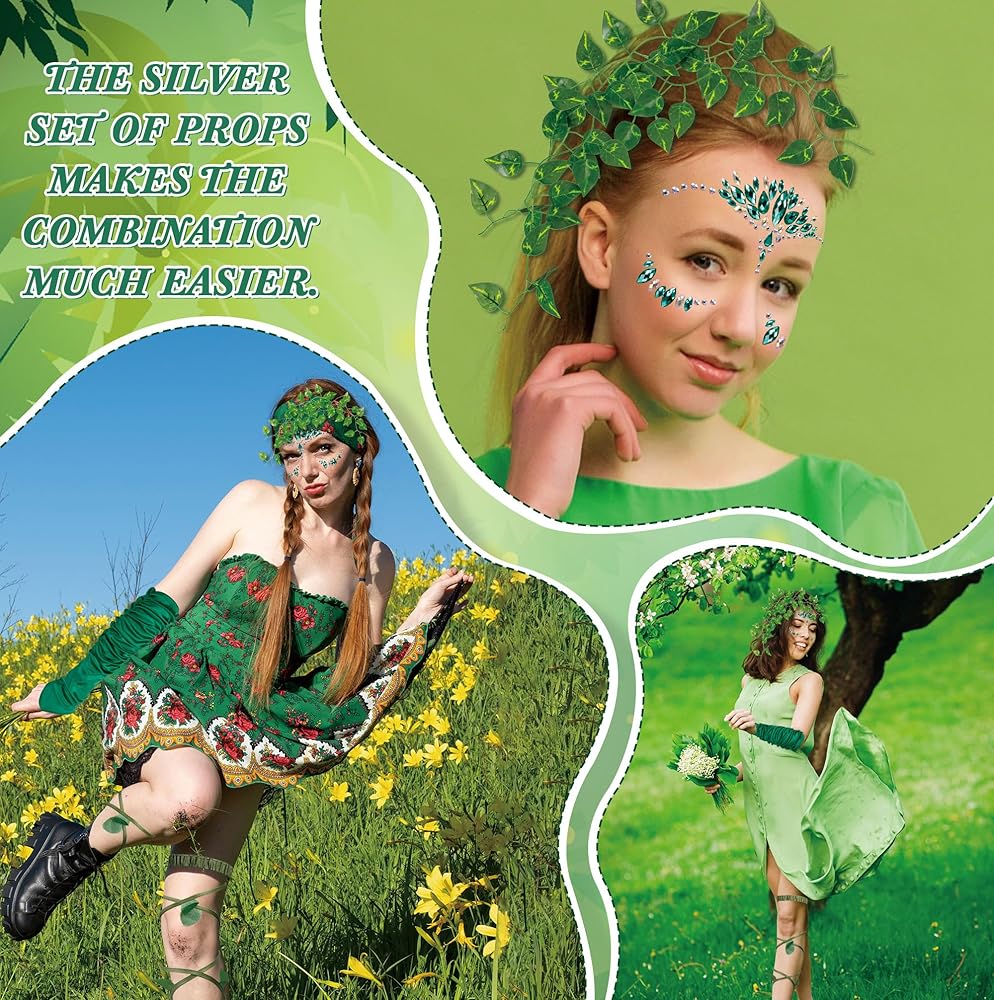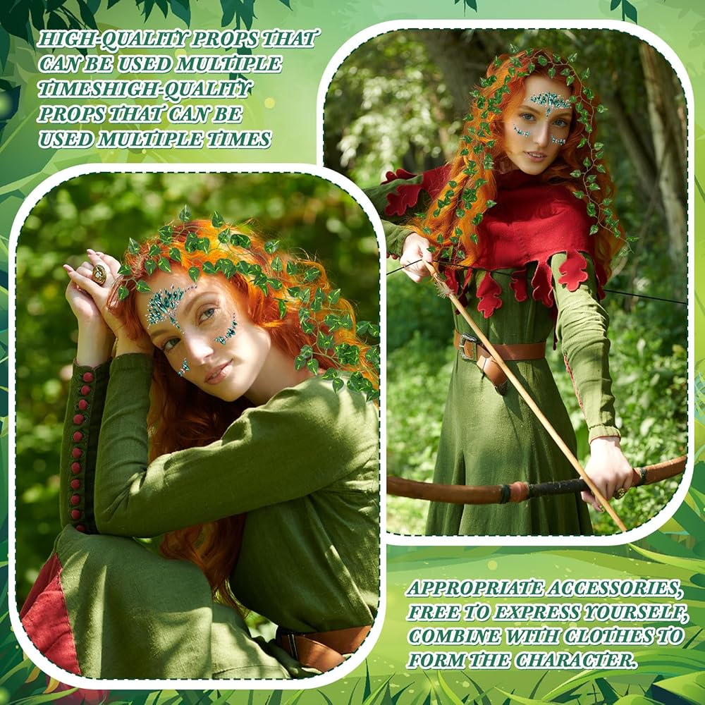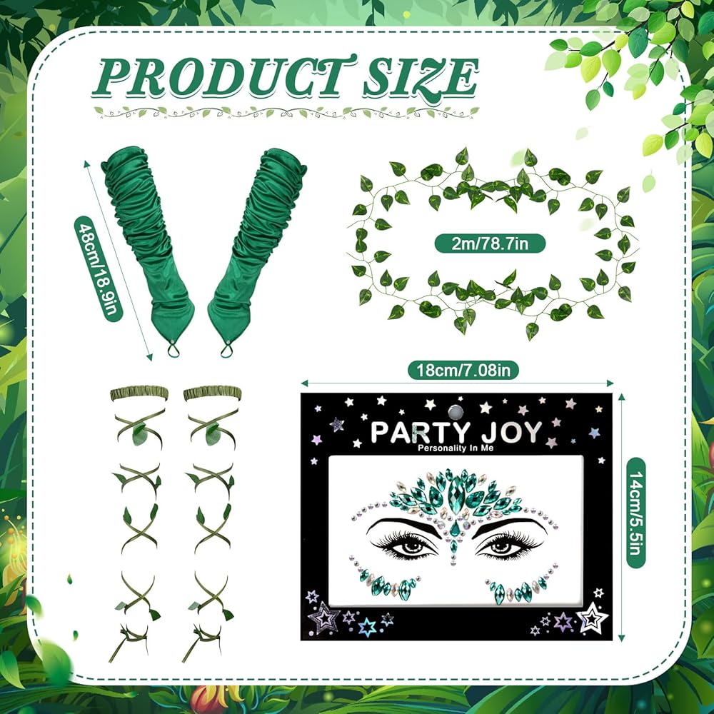 Product Include:As a Halloween cosplay costume, you will receive a pair of leaf-wrapped leg socks, a green diamond face sticker, a green radish vine leaf and a pair of green hand guards. Enough quantity to meet your aesthetic needs.