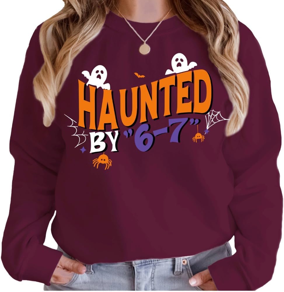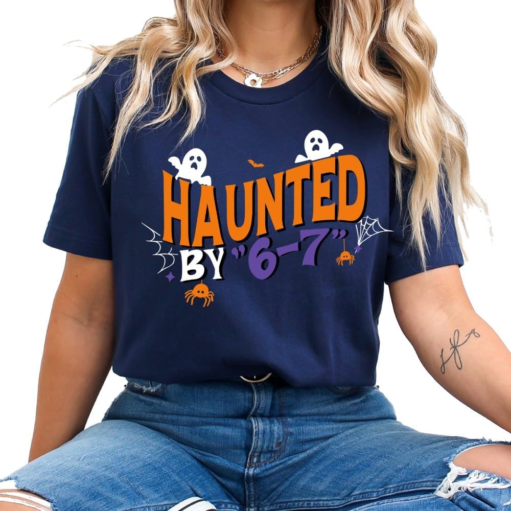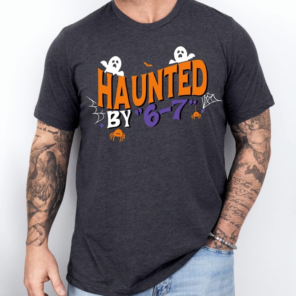 قميص 6 7، قميص مضحك مسكون بـ 6 7 Meme، الفكاهة الفيروسية على الإنترنت، الجيل المضحك Z، 67 تريند، تي شيرت Game Day، تي شيرت للأطفال الهالوين. متعدد الألوان
