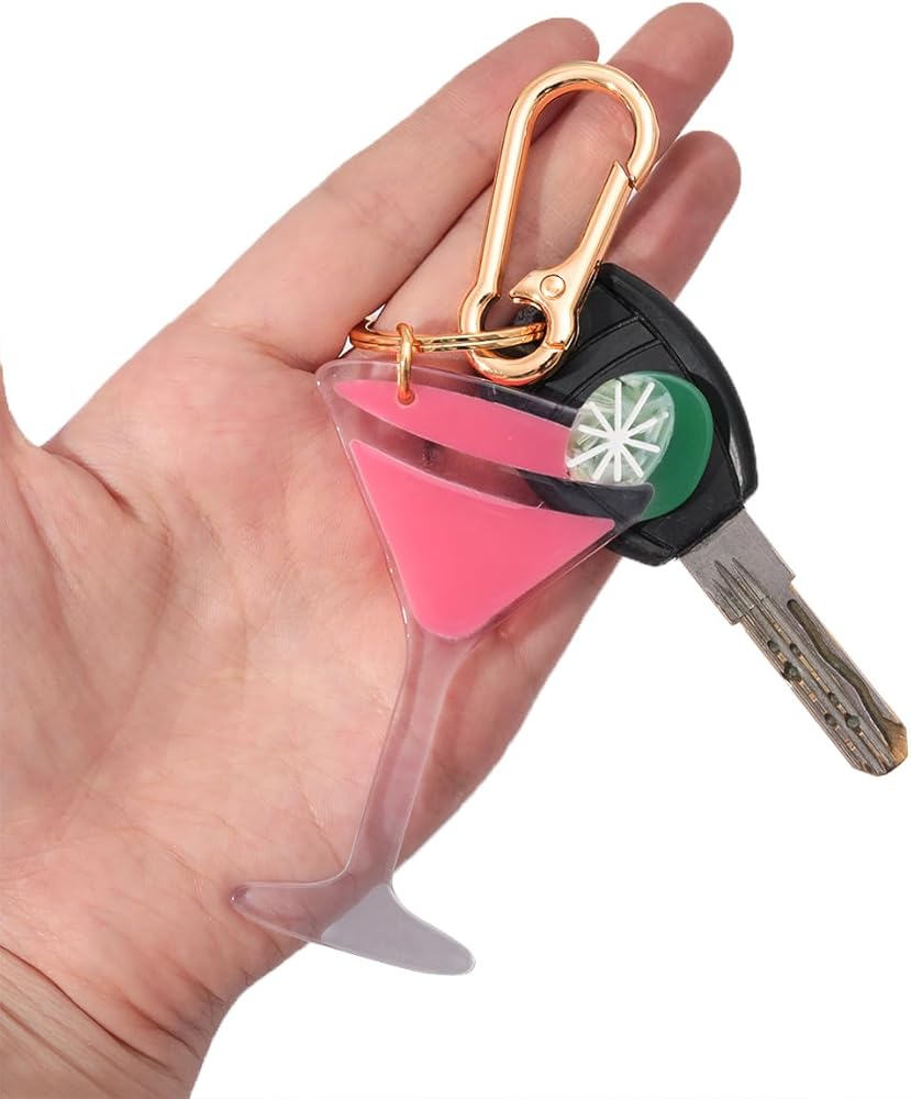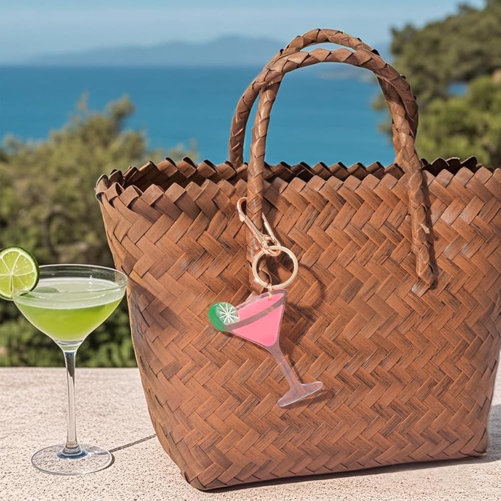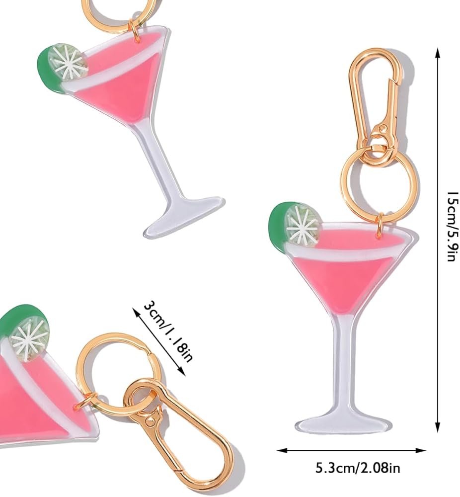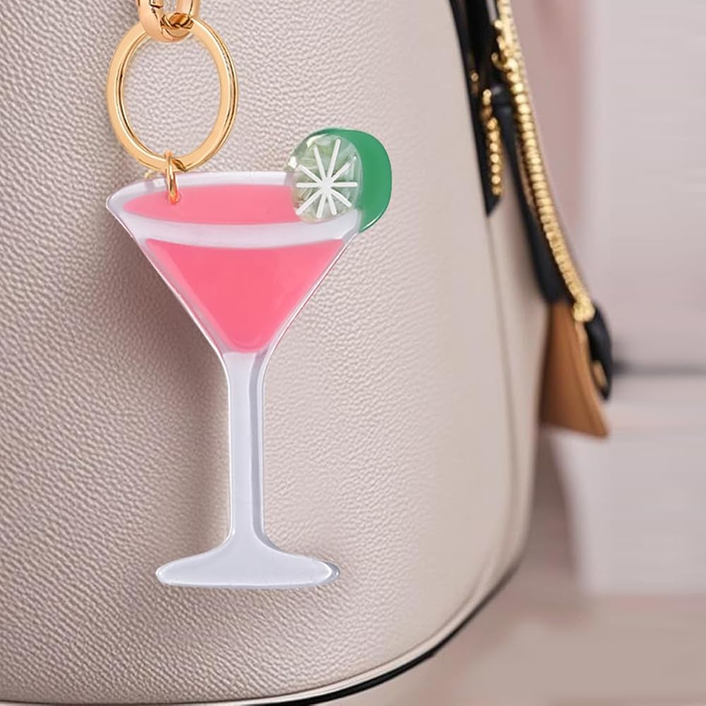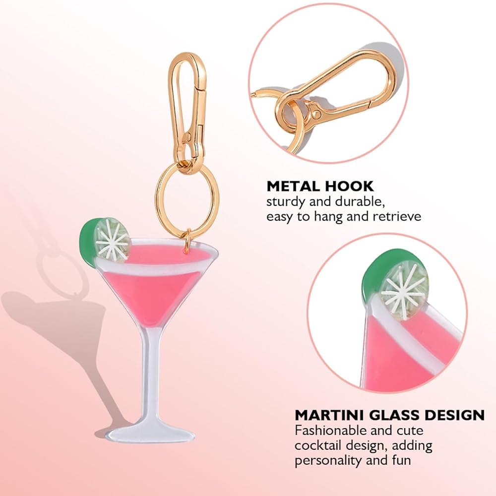 VINTAGE DESIGN: Retro motel-style keychain featuring artistic martini cocktail designs in vibrant colors, perfect for adding a touch of nostalgia to bags or keys