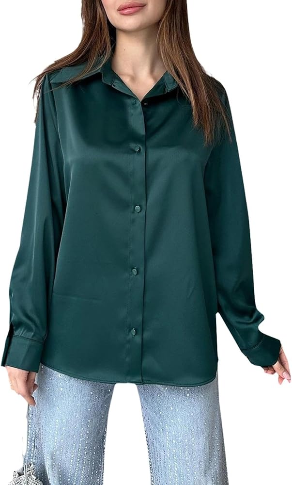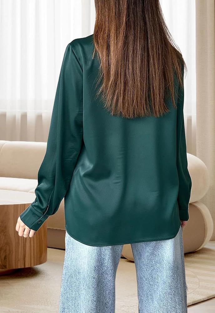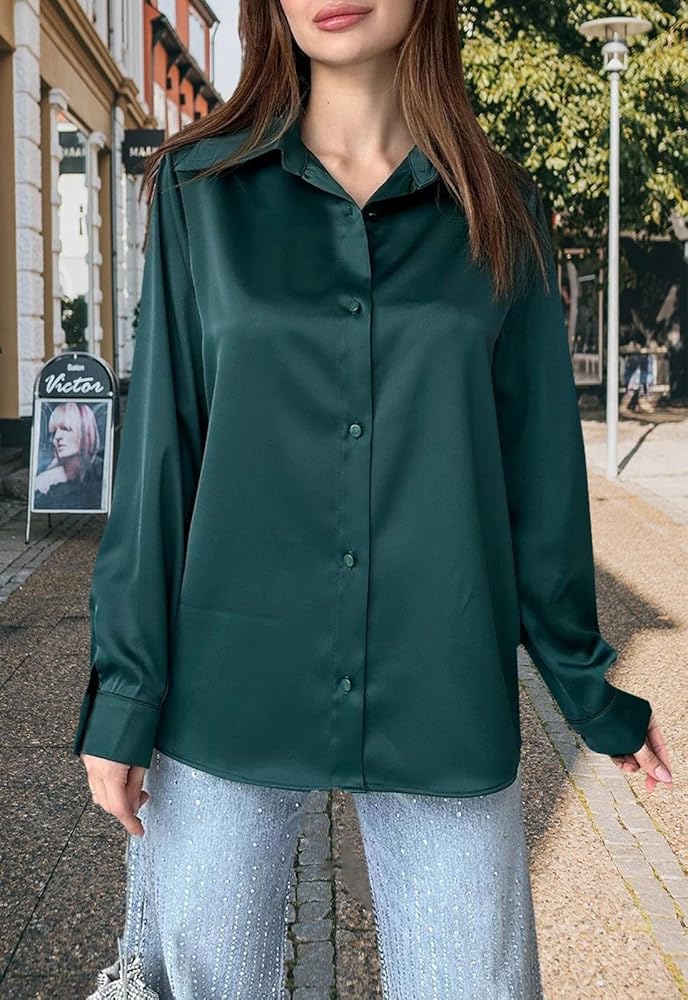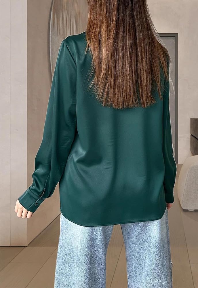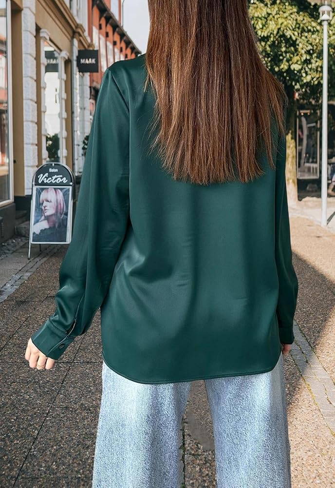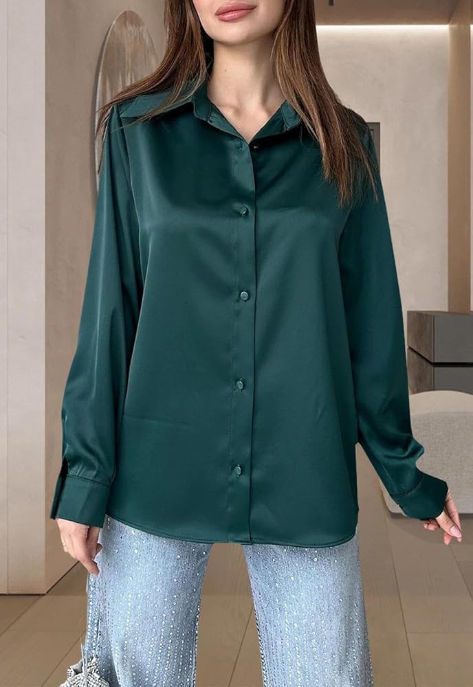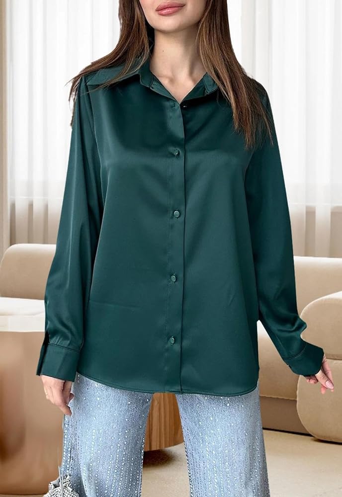 • المزايا: قمصان بأكمام طويلة بأزرار سفلية للسيدات، ياقة أساسية مطوية لأسفل، قميص بأزرار لأعلى، قمصان علوية عصرية من الساتان للنساء، قمصان المكتب الكاجوال هي قطعة يجب اقتناؤها في خزانة ملابسك.