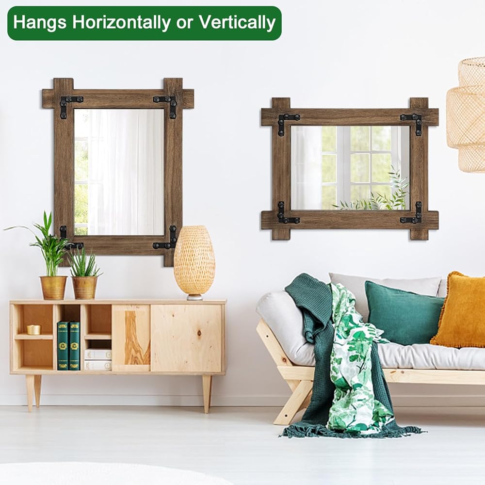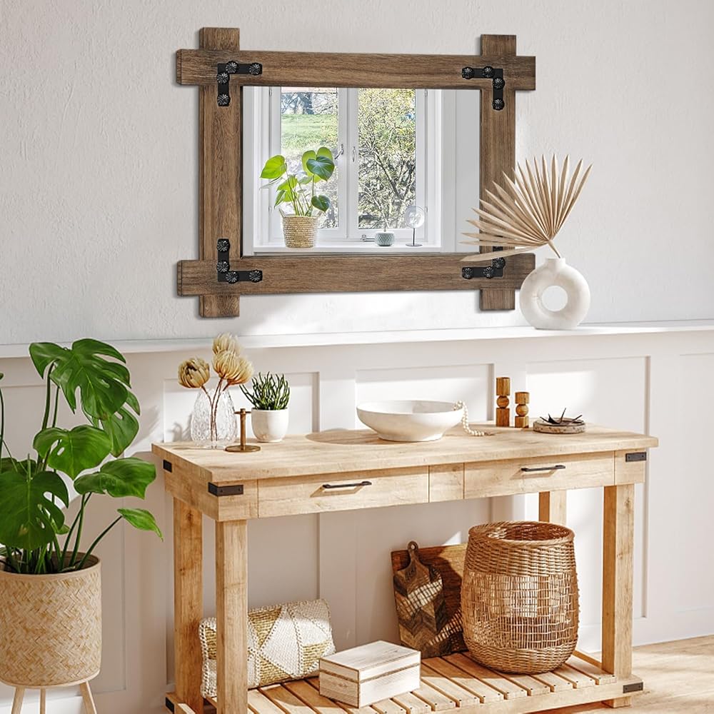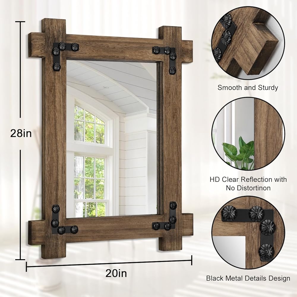 • 【Farmhouse Rustic Wall Mirror】The perfect natural wood color and the small black metal details design on the frame gives this vanity mirror a modern farmhouse twist. The farmhouse wood-framed wall mirror brings rustic character to any wall.