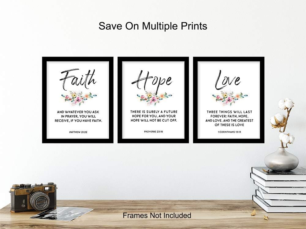ديكور فني جداري مسيحي ديني - الإيمان الملهم، الأمل، الحب آية الكتاب المقدس جدار الفن - علامات ديكور الحائط الكتاب المقدس - ديكورات المنزل للمطبخ، غرفة المعيشة أو الطعام، غرفة النوم - هدية فريدة من نوعها
