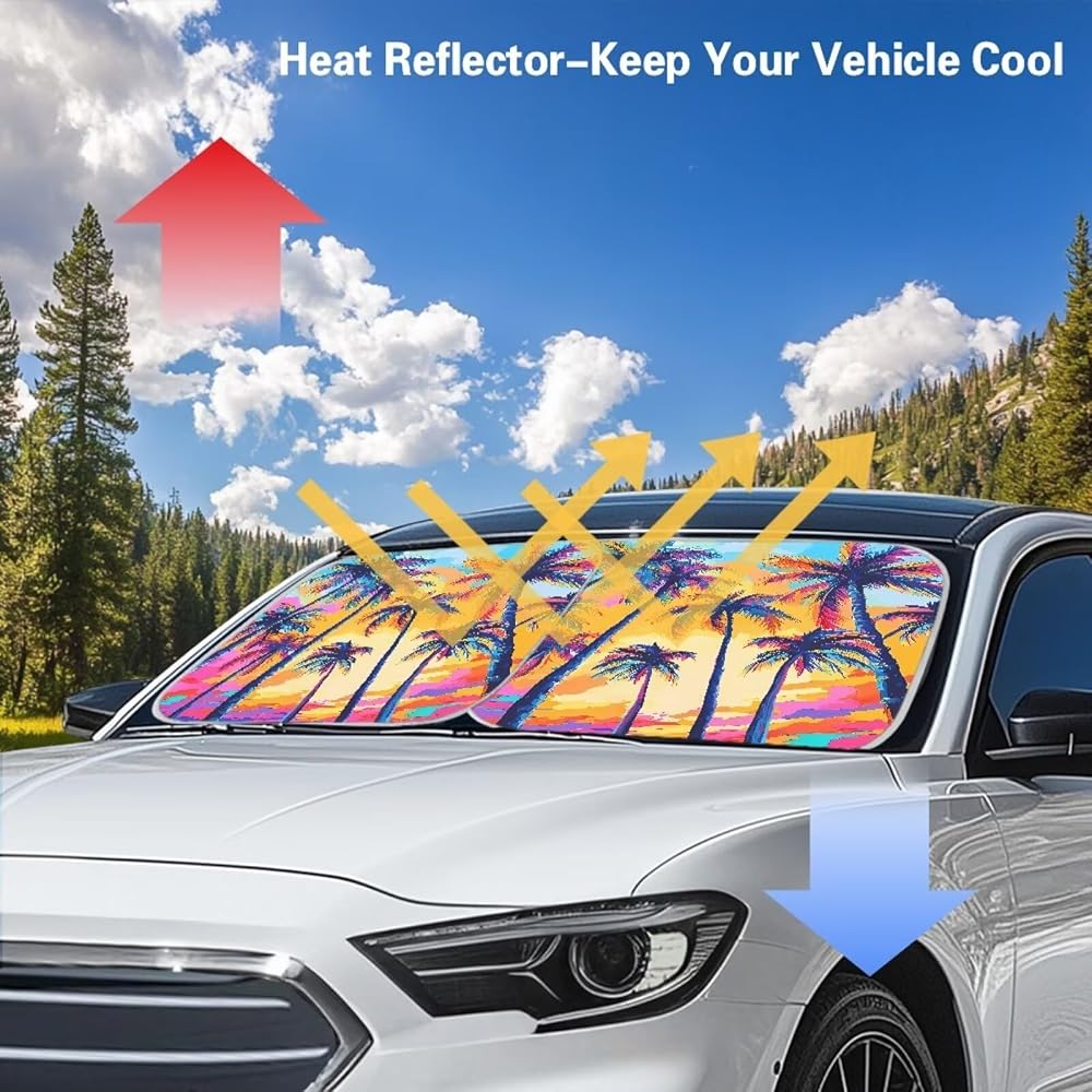 • مزايا متنوعة: تحجب مظلة الشمس العاكسة حرارة الشمس والأشعة فوق البنفسجية وتحافظ على برودة مقعدك وعجلة القيادة. تصميم فريد يجعل سيارتك مميزة تحت أشعة الشمس. تساعدك على تحديد موقع سيارتك بسرعة في موقف السيارات.