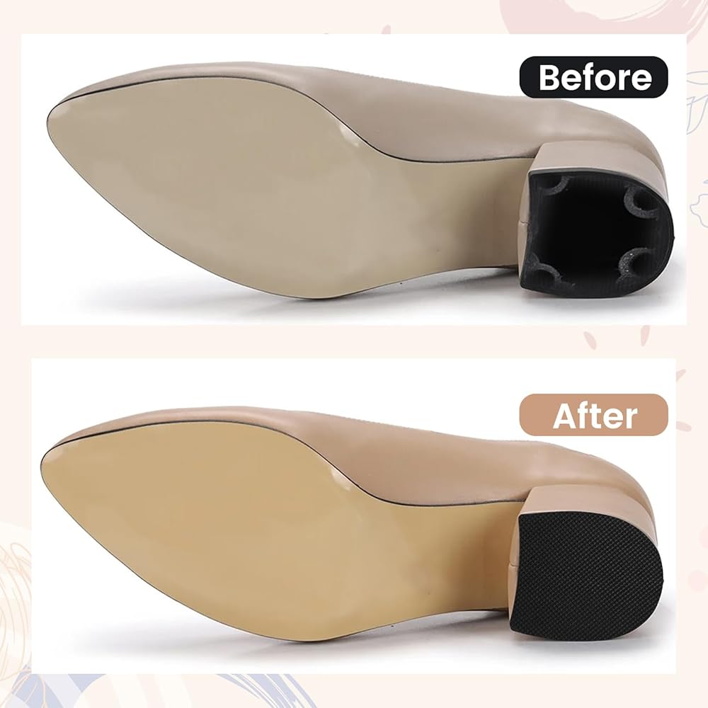 • Noise Reduction: The high heel patches are engineered with noise-reducing properties that minimize the clicking sound typically associated with high heels on hard surfaces. These anti-heel caps absorb impact and vibration through their flexible rubber composition, creating a quieter walking experience. This feature is particularly beneficial in office environments, quiet spaces, or social gatherings where loud footsteps might be disruptive