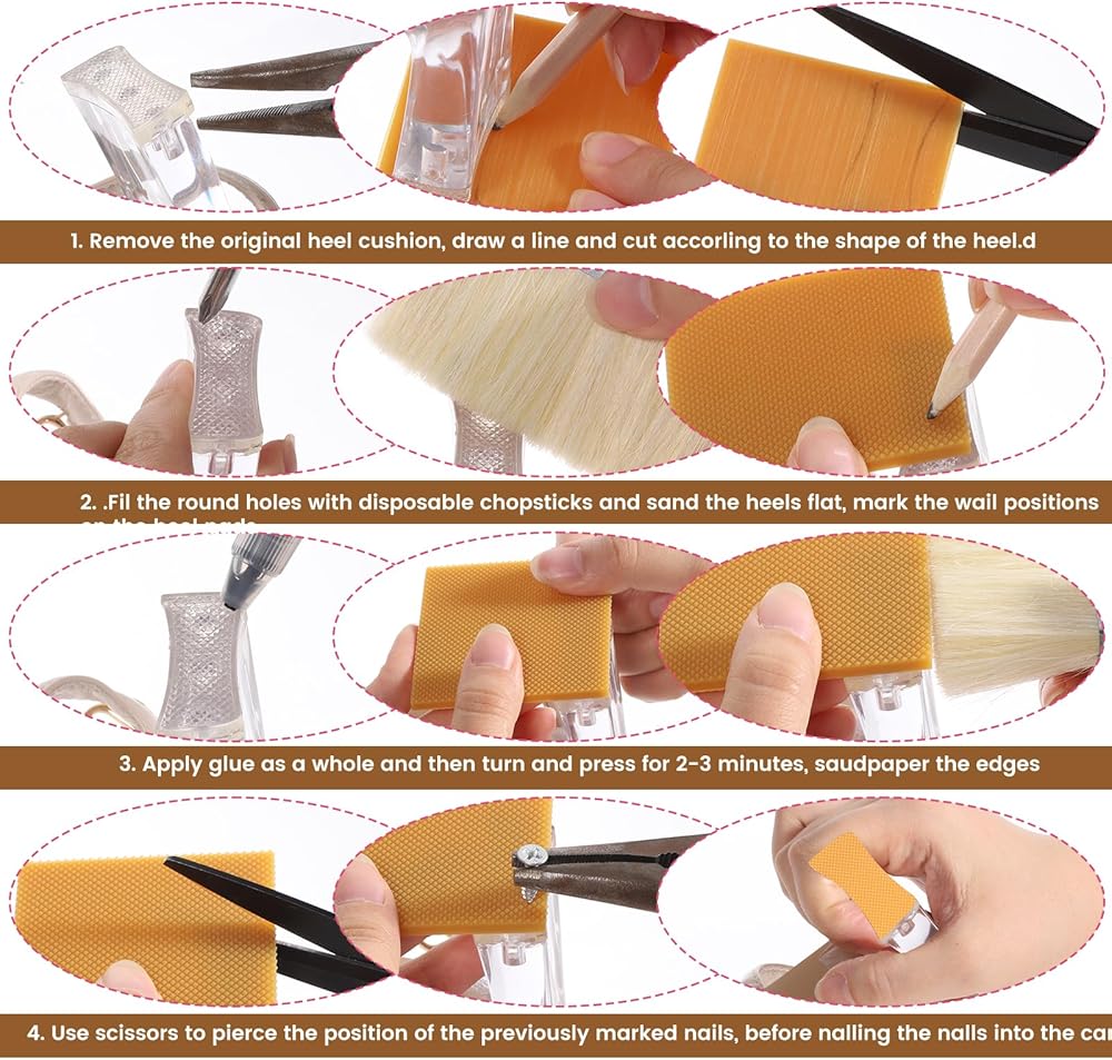 • Quality Material: These high heel patches utilize high-quality rubber material that provides superior durability and long-lasting protection for your footwear. The textured surface of these rubber sole protectors enhances grip on smooth surfaces, making them ideal anti-slip heel caps. The sturdy construction ensures your high heels maintain their structural integrity even with regular use, offering reliable heel protection that extends the life of your favorite shoes while maintaining comfort and style