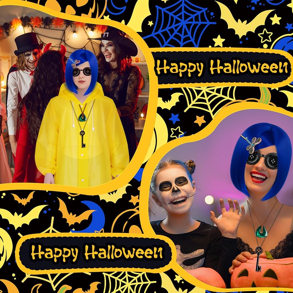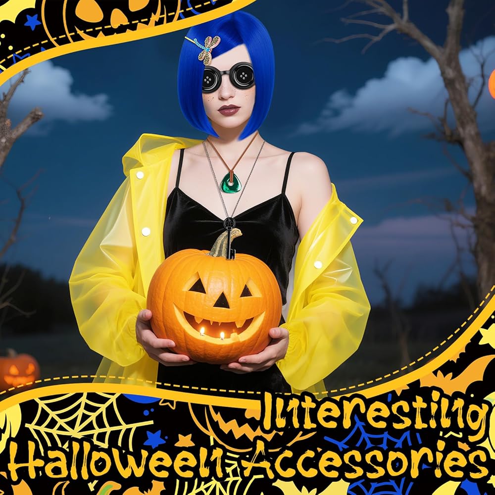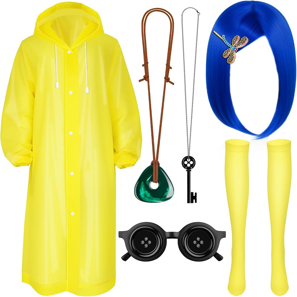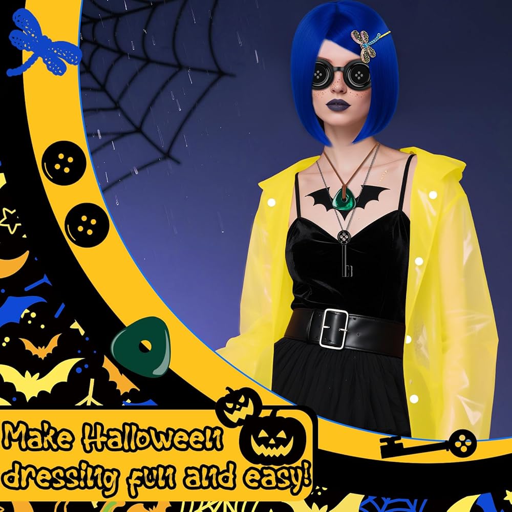 Product Include:You will receive a blue wig, a set of hairpins, a necklace, glasses decorations, a yellow raincoat, a pair of yellow socks and a freckle pen. There are enough quantities to help you dress up well and meet your different aesthetic needs.
