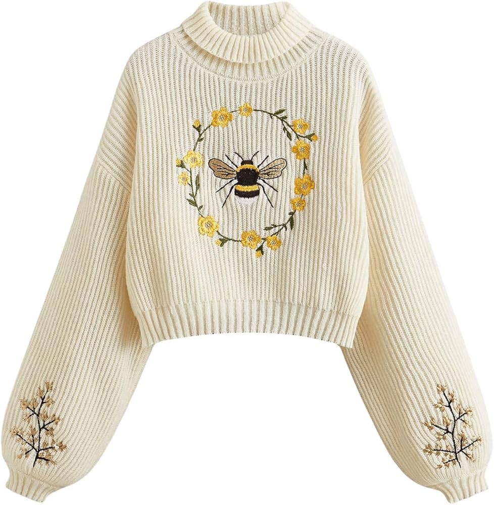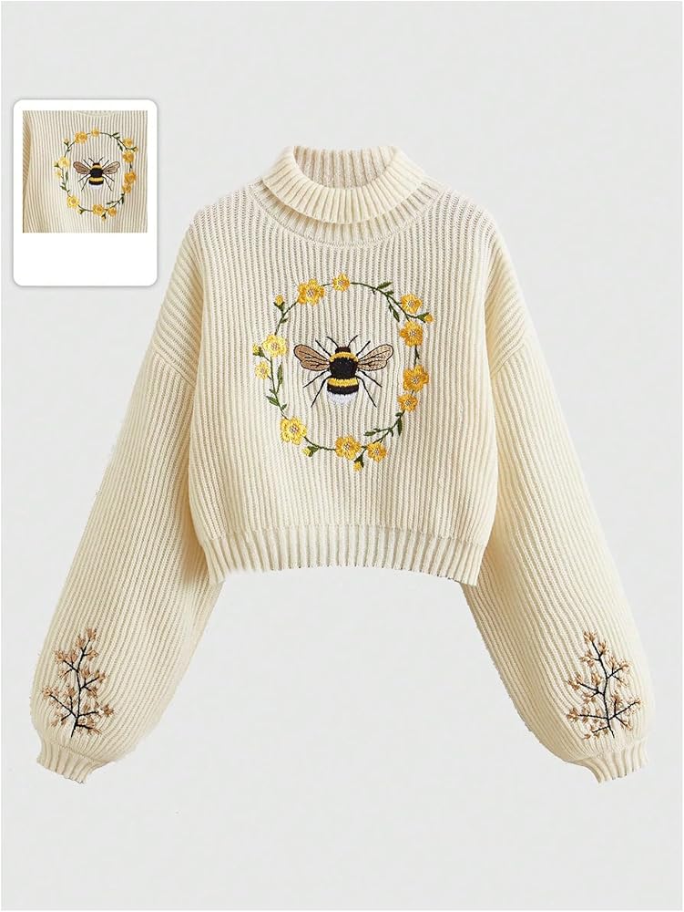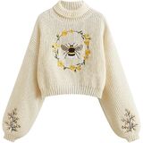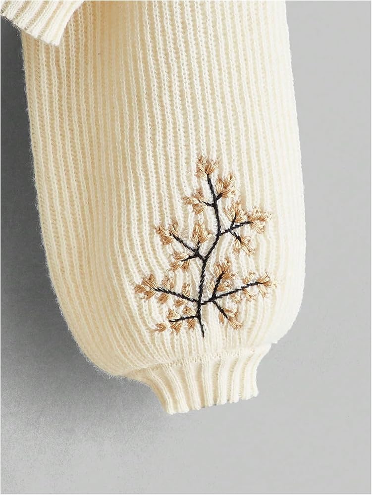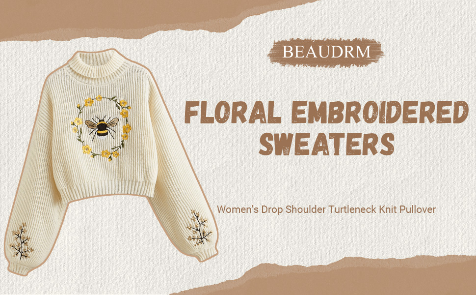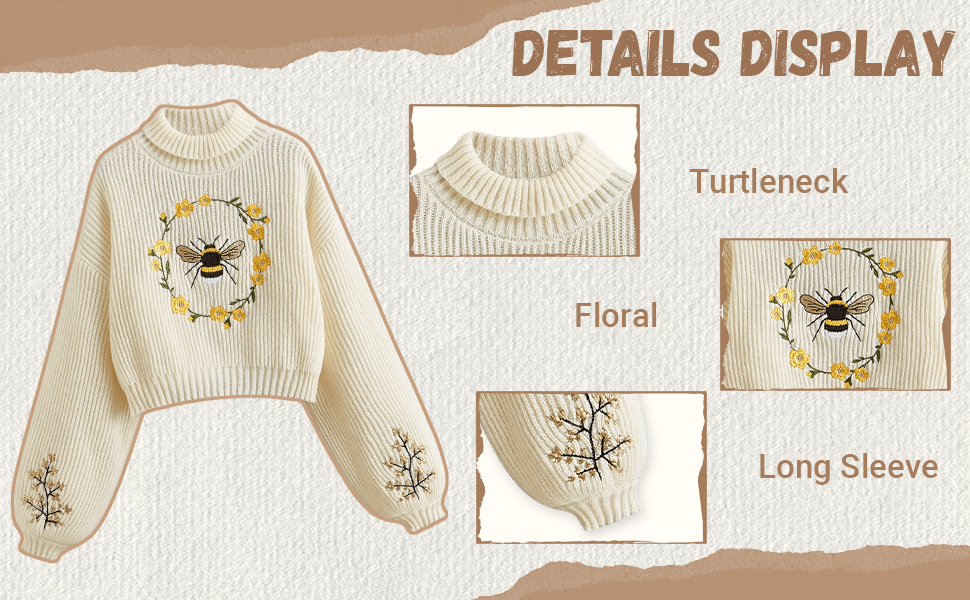 • المزايا: تصميم مطرز، طباعة زهور، أكمام طويلة، رقبة دائرية، مقاس فضفاض، طول قصير، بلوفر، مريح وأنيق