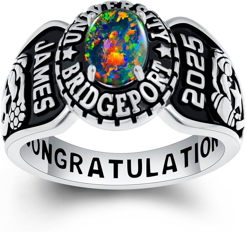 خواتم فئة مخصصة خواتم فئة شخصية بالكامل للنساء أوبال جوهرة الفضة الاسترليني خواتم فئة خواتم للنساء المدرسة الثانوية حجم 5-13 حلقات فئة المدرسة الثانوية النسائية