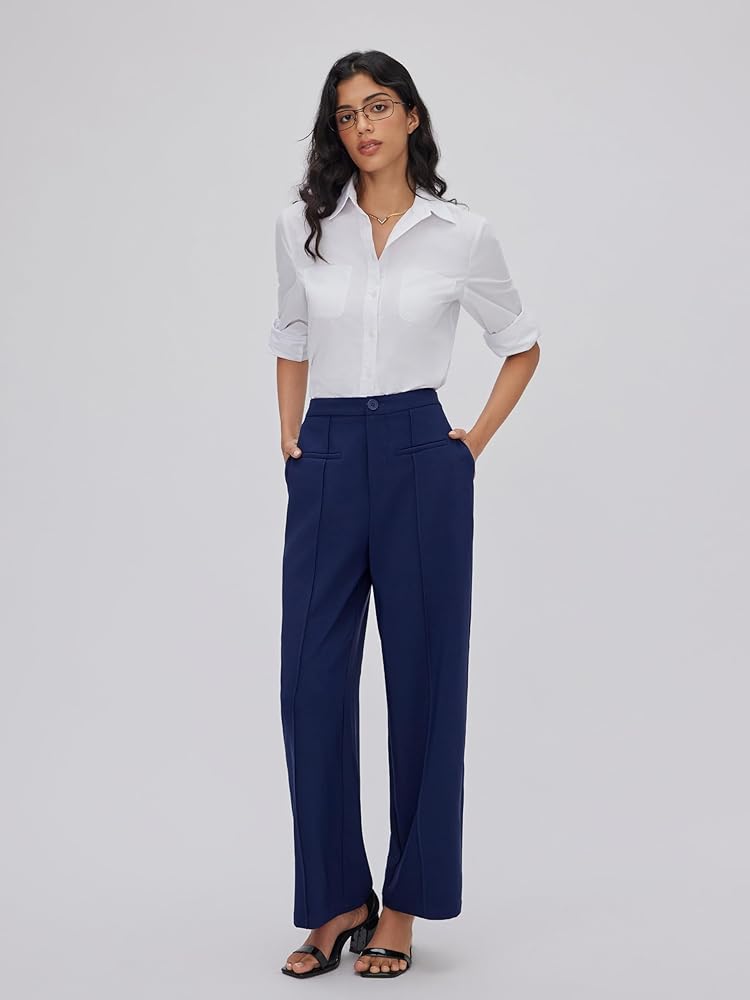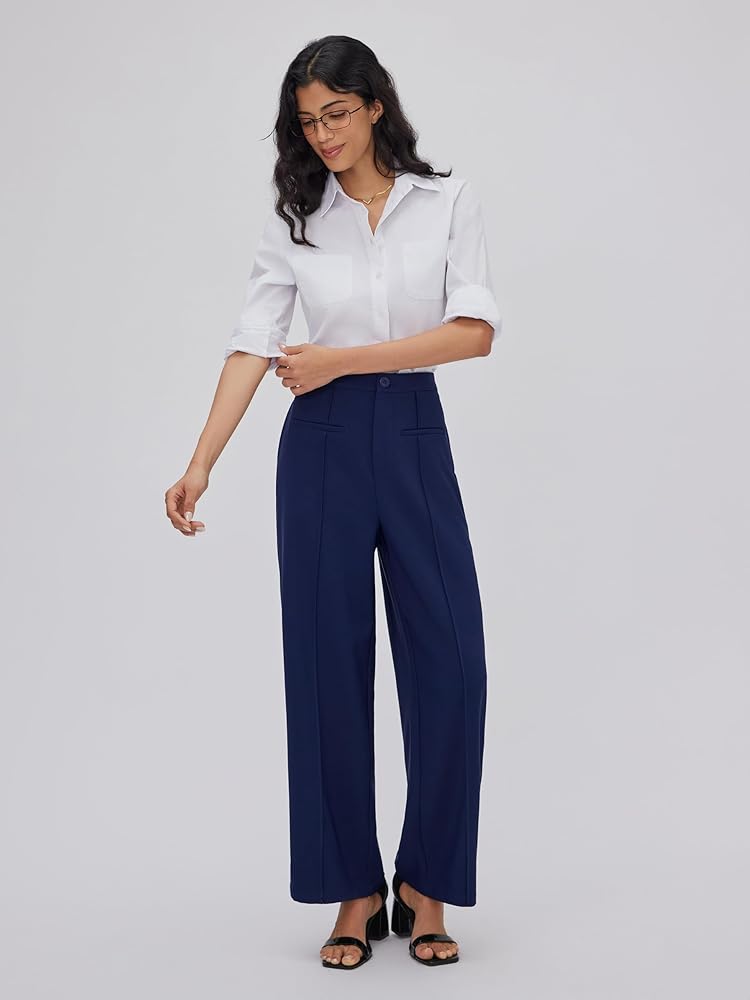 - تصميم ساق واسعة: قصة ساق واسعة أنيقة توفر صورة ظلية مريحة وجذابة.