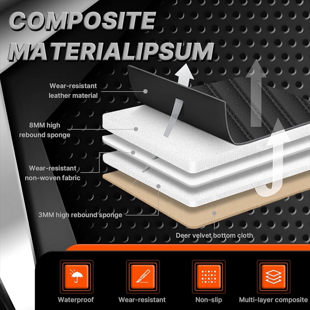 • 【خامة عالية الجودة】المادة السطحية لغطاء مقعد السيارة مصنوعة من جلد صناعي عالي الجودة مع تقنية الخياطة المزدوجة، والتي تتميز بقوة شد جيدة، وأكثر نعومة ومتانة ومقاومة للاهتراء ومقاومة للماء. الطبقة الداخلية لغطاء مقعد السيارة الجلدي مصنوعة من إسفنجة سميكة ذات مرونة عالية، مما يزيد من الراحة والتجربة الجيدة. الجزء السفلي مصنوع من السيليكون غير القابل للانزلاق، مما يجعل وسادة المقعد ليس من السهل تحريكها ويحمي سلامة القيادة