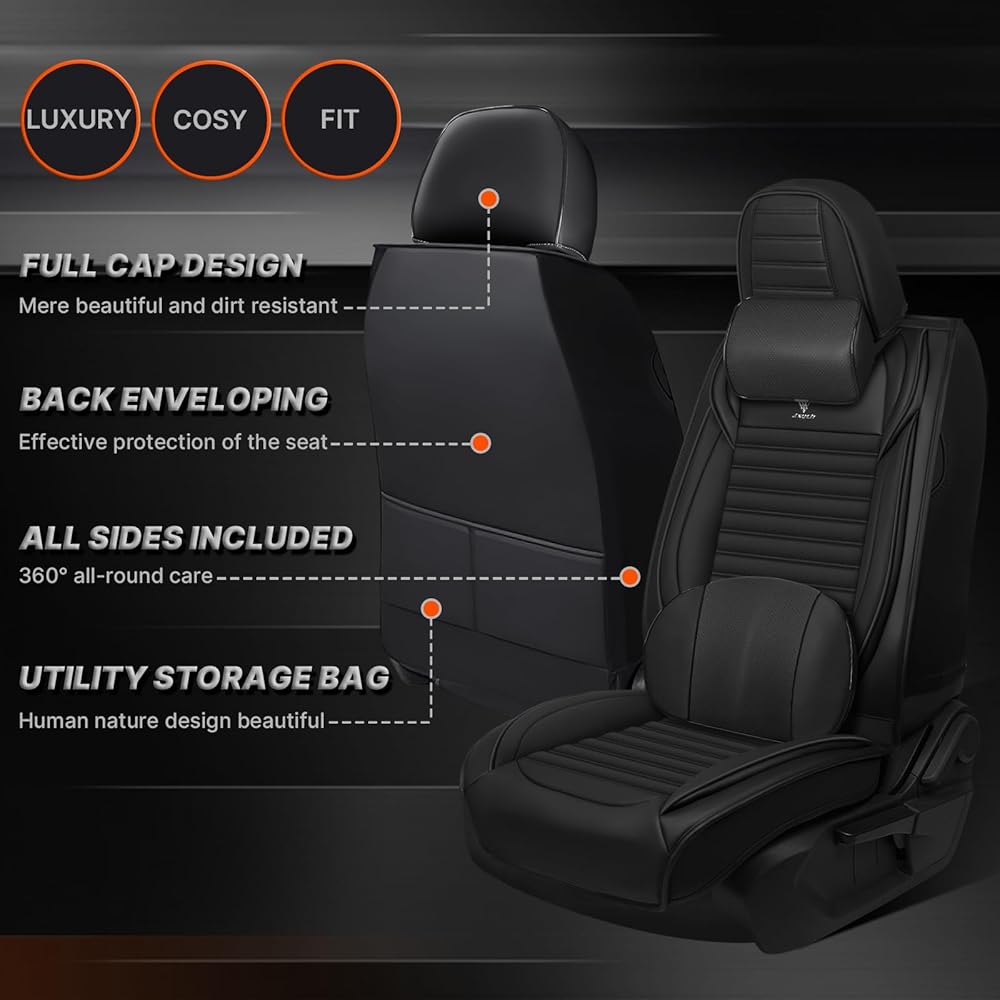 • 【تصميم أنيق】تتميز أغطية المقاعد الفاخرة بتصميم مطبوع بشكل جميل لإظهار التخصيص. يحتوي غطاء مقعد السيارة على جيبين في مسند ظهر المقعد الأمامي وتصميم جيب صغير في الأمام. من السهل تخزين العناصر الصغيرة. جلد صناعي عالي الجودة، تصميم ذو مظهر ممتاز، يجعل سيارتك جديدة على الفور، يجمل البيئة الداخلية، يضيف المرح إلى حياتك
