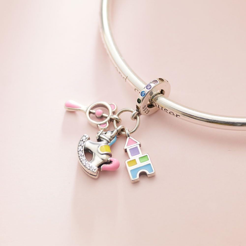 925 فضة سحر لباندورا سوار الوليد حزب قدم زجاجة تستخدم في الرضاعة هزاز الحصان الدب سحر للأم هدايا للاستحمام