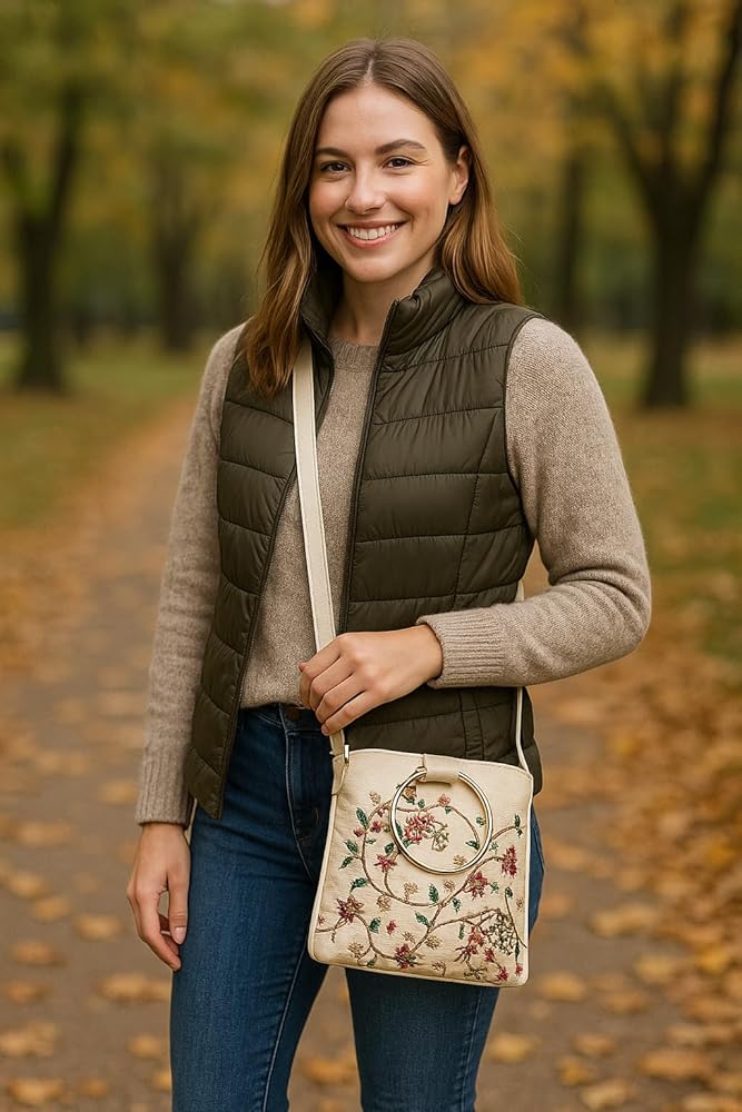 Elevate your style with this beautifully embroidered Indian cross-body bag. Crafted by skilled artisans, it features intricate floral embroidery across the front and sides that adds elegant accents to any outfit. Made from durable materials to carry daily essentials hands-free, this versatile purse comes with an adjustable shoulder strap allowing it to be worn comfortably across the body. Whether dressing casually or formally, the traditional designs and colors make it a timeless accessory that blends cultural heritage with contemporary fashion. Showcasing techniques like thread work and flower motifs, it pays homage to Indian handicraft traditions in a compact, convenient design suitable for everyday use.