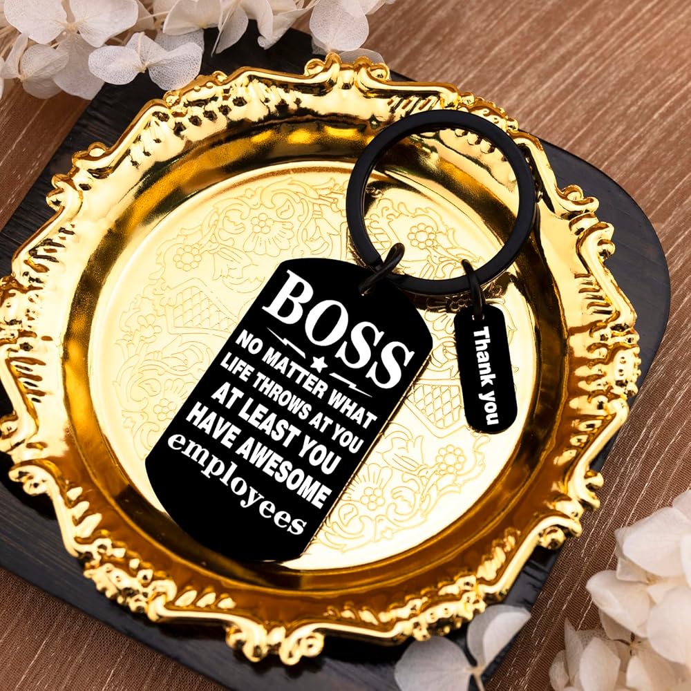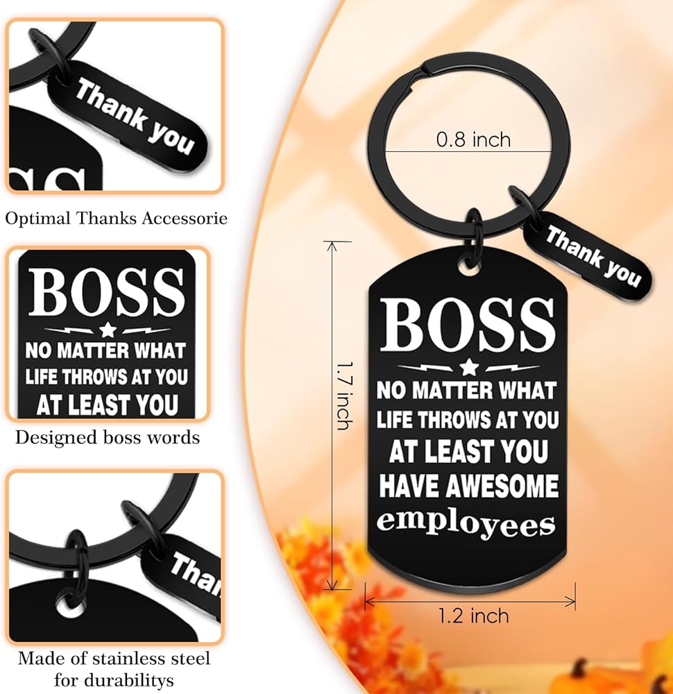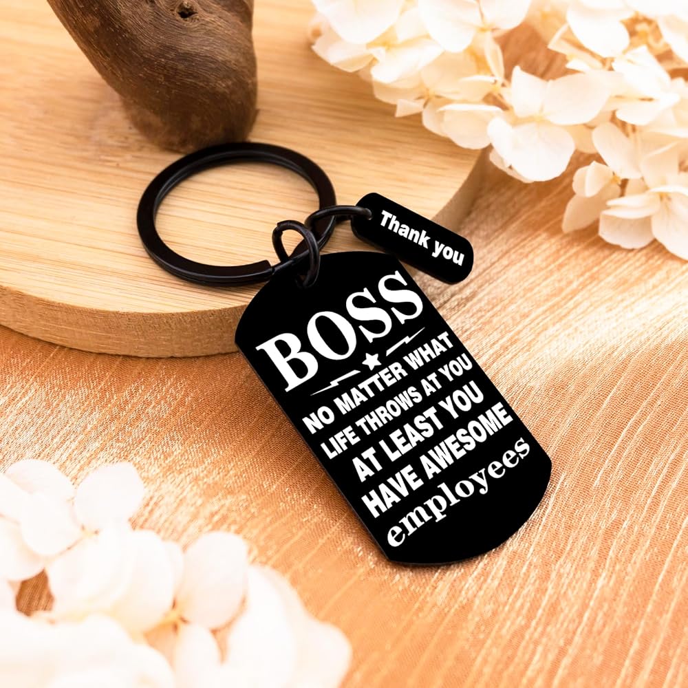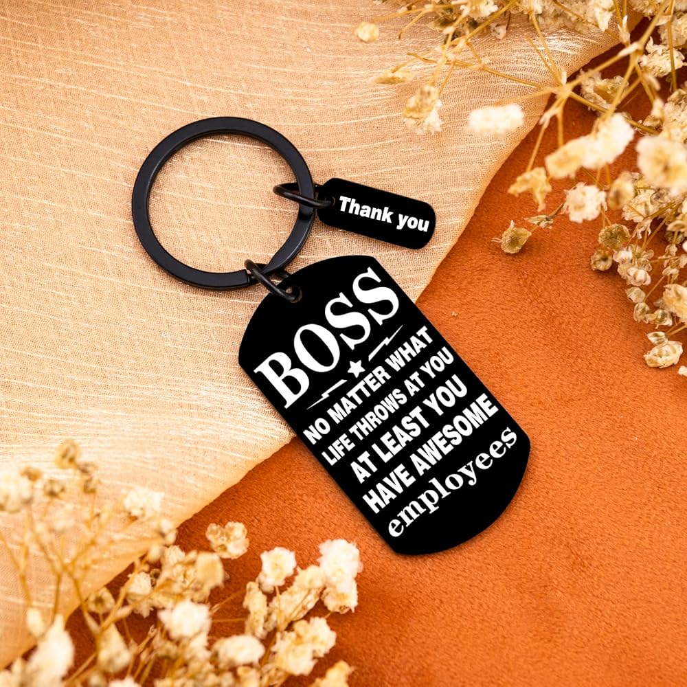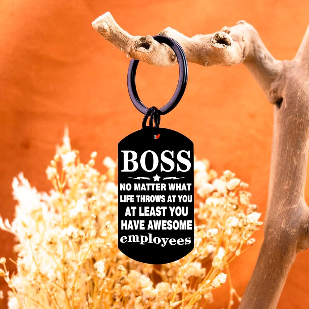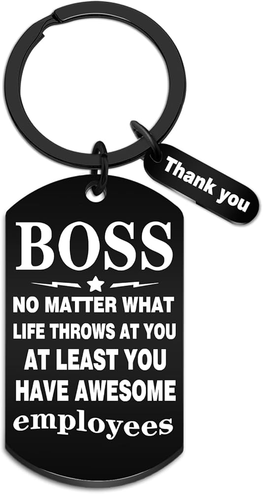 Looking to express just how much your male boss means to the team and how deeply his hard work, guidance, and leadership are appreciated? This thoughtful collection of best boss gifts for men is here to help you do exactly that. It's more than just a present—each item is carefully chosen to convey genuine gratitude, highlighting the impact he's had on your professional growth, the positive work environment he fosters, and the trust he places in his team. Whether it's a personalized keepsake that reflects his unique style, a practical tool that aligns with his passions, or a heartfelt gesture that speaks to the respect you hold for him, these gifts go beyond the ordinary to show just how valued he truly is. Let this meaningful selection be your way of saying, “Thank you for being not just a boss, but a mentor, a leader, and someone who makes coming to work better every day.” Featuring the heartfelt message "No Matter What Life Throws At You, At Least You Have Awesome Employees," this laser-engraved keychain makes the perfect farewell gifts for boss or appreciation present. Ideal for retirement send-offs, promotions, or Boss's Day, it's a professional yet personal way to acknowledge great leadership. The premium stainless steel construction ensures lasting quality while maintains an executive look on key rings or briefcases.Key Features:✔ Heartfelt boss appreciation message✔ Premium laser-engraved stainless steel✔ Professional size✔ Perfect for various work occasionsGive your boss a gift they'll truly appreciate with this thoughtful and durable keychain!