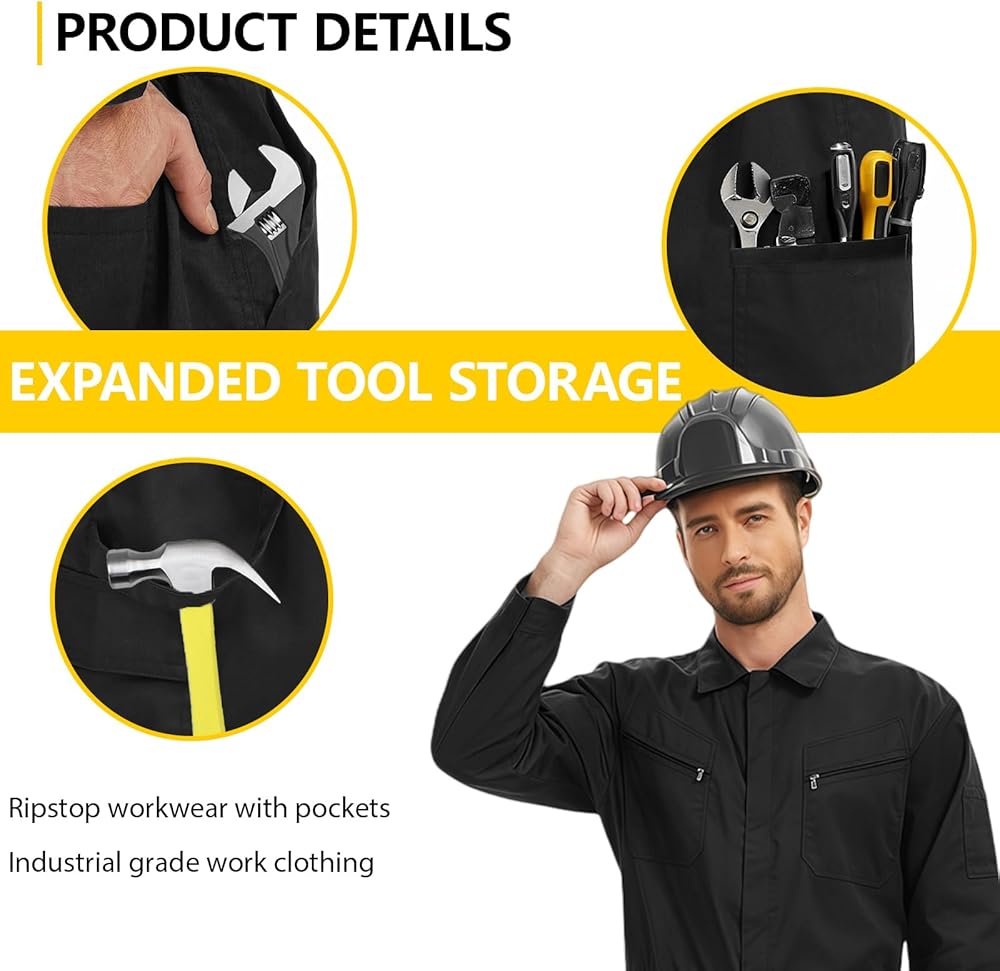 تصميم احترافي ومتعدد الاستخدامات: توفر هذه الملابس ذات اللون الأزرق الداكن مظهرًا كلاسيكيًا واحترافيًا مناسبًا للميكانيكيين والرسامين وعمال البناء ووظائف ورش العمل المختلفة؛ كما أنها بمثابة زي ميكانيكي ذو مظهر أصيل لعيد الهالوين
