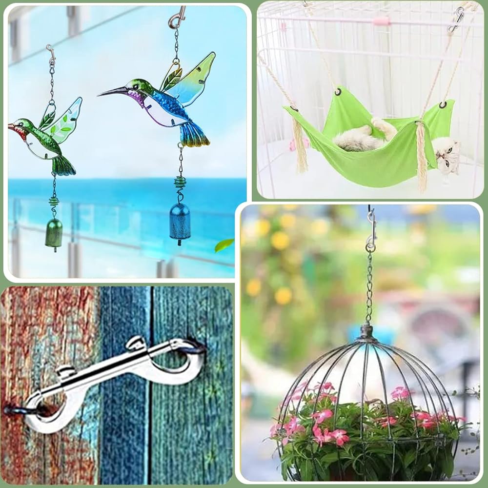 استخدام واسع: خطافات التثبيت هذه مناسبة للاستخدام في الباب أو في الهواء الطلق، ويمكنك استخدامها كسلسلة مفاتيح لدلاء الطعام ودلو الماء ومثبتات حبل الغسيل للأرجوحة، وسلسلة الكلاب، وحزام الفخذ وأكثر من ذلك