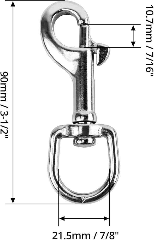 الاستخدام: يمكن أن يعمل مشبك الخطاف هذا مع الحبل، المقاود، الأشرطة، سلسلة بدون لحام، كابل ذو قطر صغير، أطواق الكلاب، حلقات حزام المحفظة، سلاسل المفاتيح، إلخ.