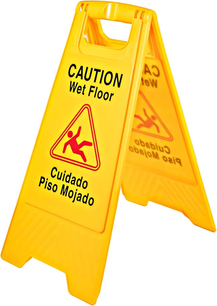 تحذير ثنائي اللغة: النص الأسود الموجود على علامة تحذير الأرضية المبللة مطبوع باللغتين الإنجليزية والإسبانية، إلى جانب رمز أحمر، لتحذير المشاة من الانسكابات والتسربات والمناطق التي غمرتها المياه. يأتي مع ملصق تحذيري مجانًا.