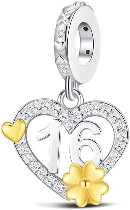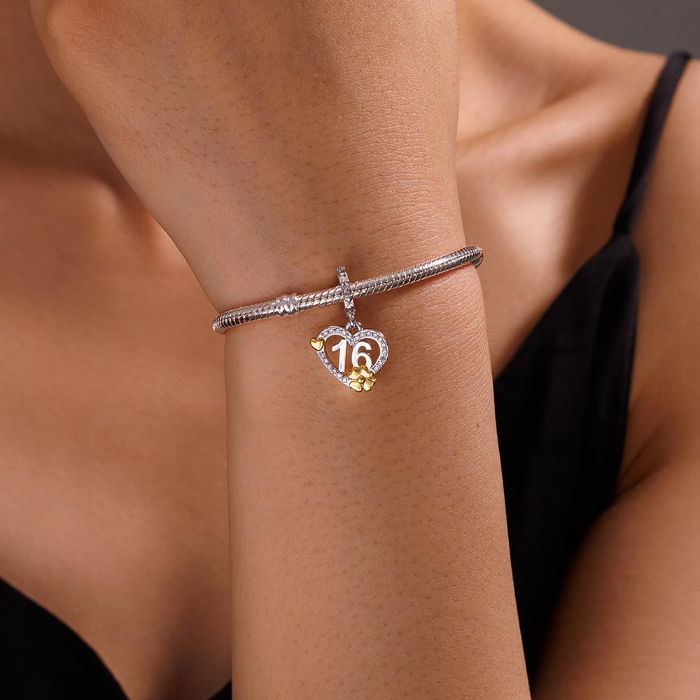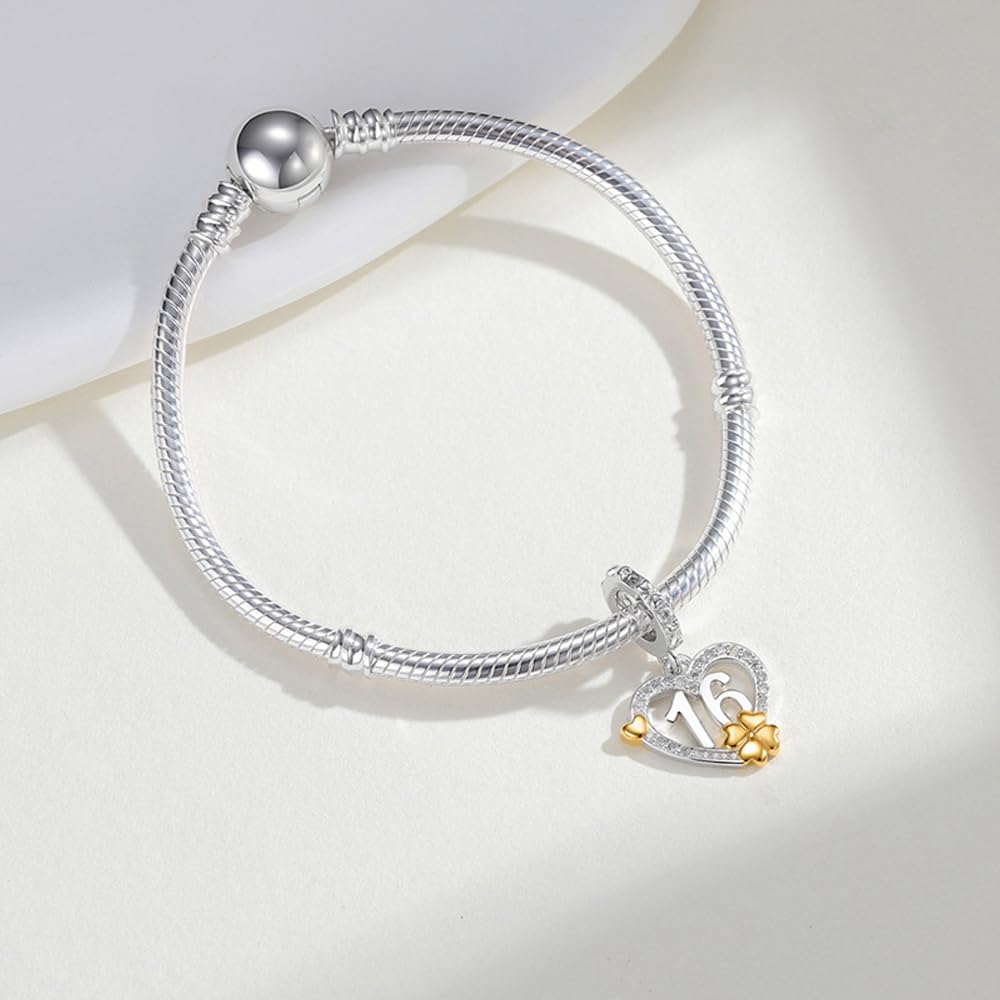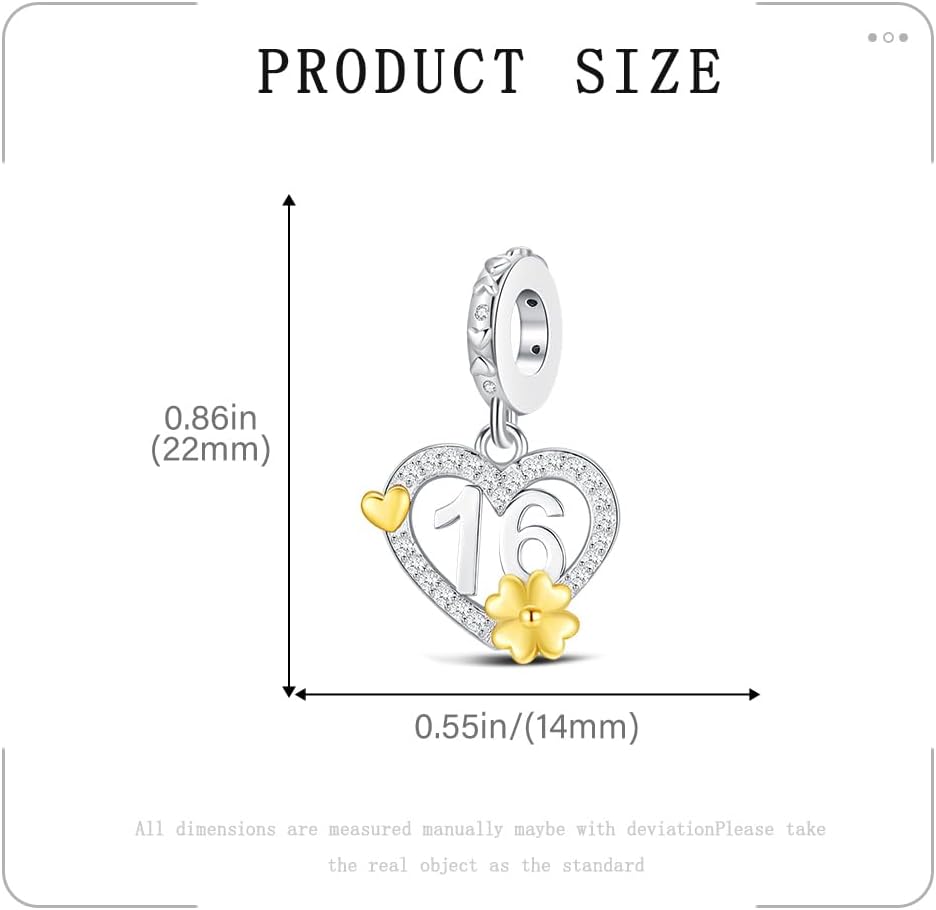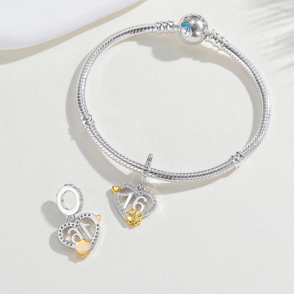 OUTSTANDING QUALITY - This Sterling Silver Birthday Number Pendant Love Heart Charms For Sterling Silver Bracelet Charms, inlays clear CZ Stones. It is made by high skilled worker, perfect processing. it is smooth.Celebrate 16th, 18th, 21st, 30th, 40th, 50th, 60th Birthdays
