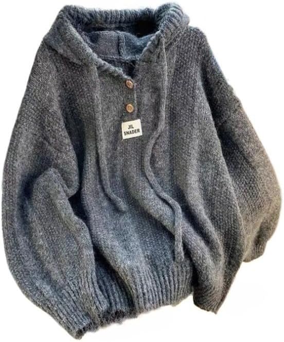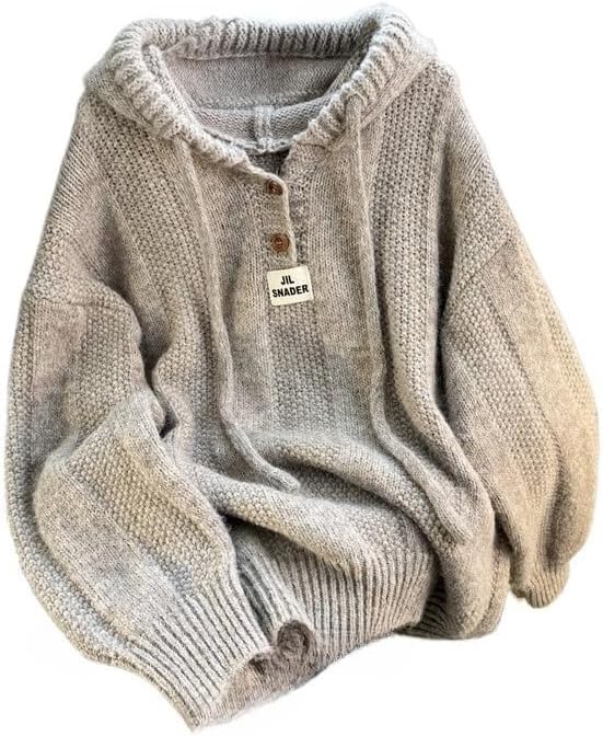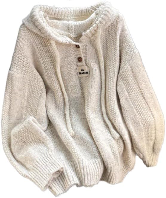 Cottagecore Cable Knitted Hooded Sweater for Women Coquette Fall Soft Baggy Grandpa Sweaters Streetwear