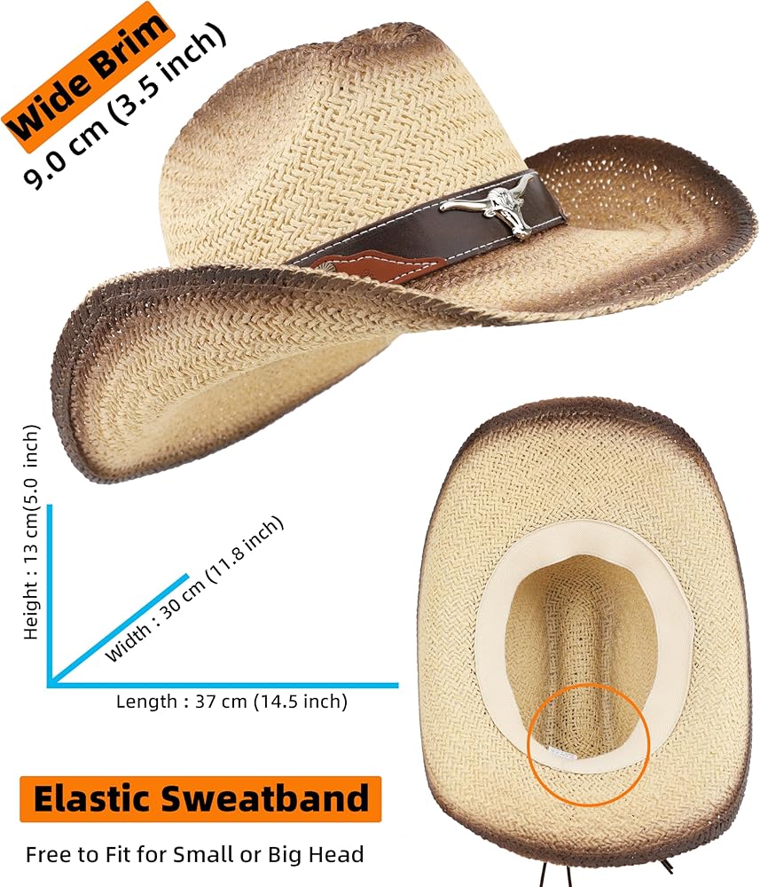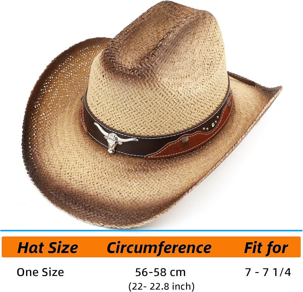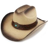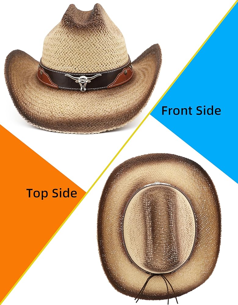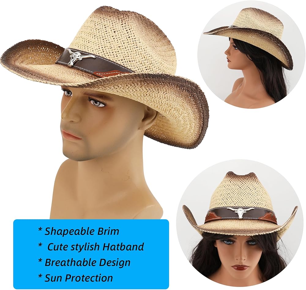 Besoogii Western Straw Cowboy Hat for Women and Men, Sun Beach Cowgirl Hat, Wide Brim, Cattleman Crease Style