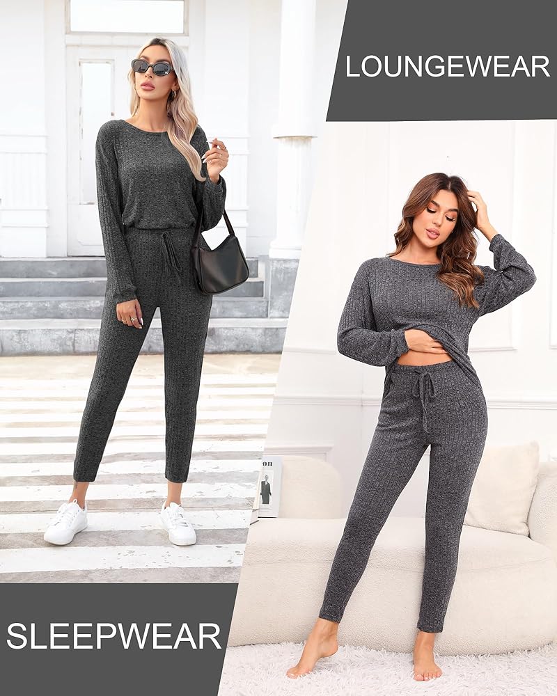 مطابقة جميع الأنماط: يمكن بسهولة ارتداء مجموعات البيجامات الناعمة للسيدات مع أحذية رياضية أو صنادل يومية للحصول على مظهر كاجوال عصري، أو مع الكعب العالي للحصول على مظهر أكثر رقة؛ سوف تحب الألوان الجميلة والنسيج المضلع الجميل