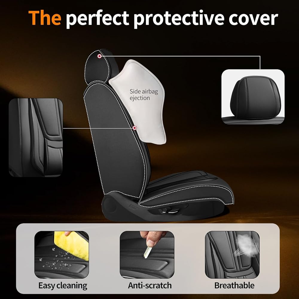 【🛡 تصميم آمن للوسائد الهوائية】مصنوعة من مناطق توزيع الوسائد الهوائية المقطوعة بدقة وألواح التعرض الجانبية، تضمن أغطية المقاعد هذه تفعيل الوسادة الهوائية دون عوائق ووظيفة حزام الأمان. تم اختباره لتلبية معايير السلامة الصناعية.