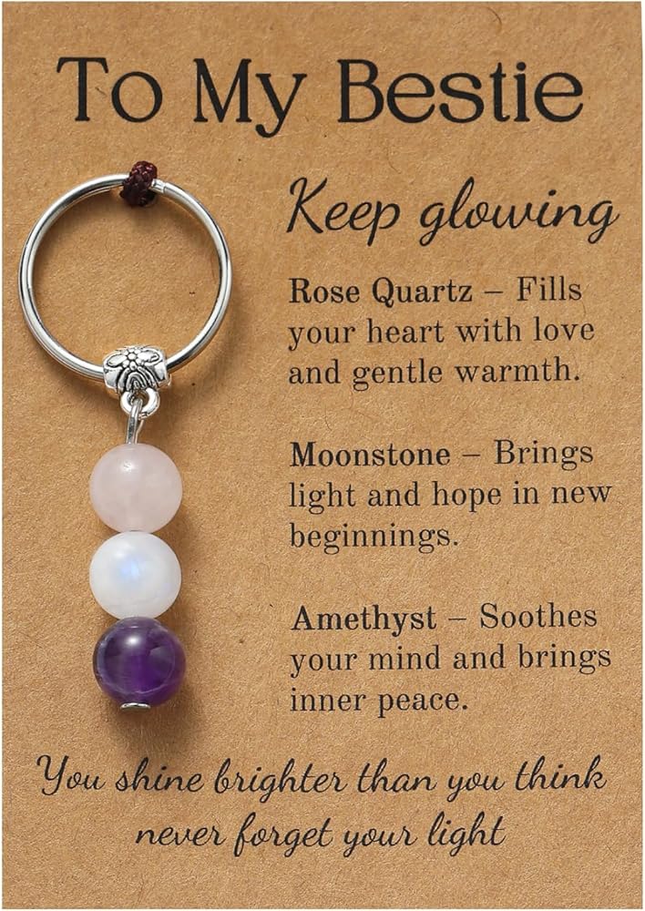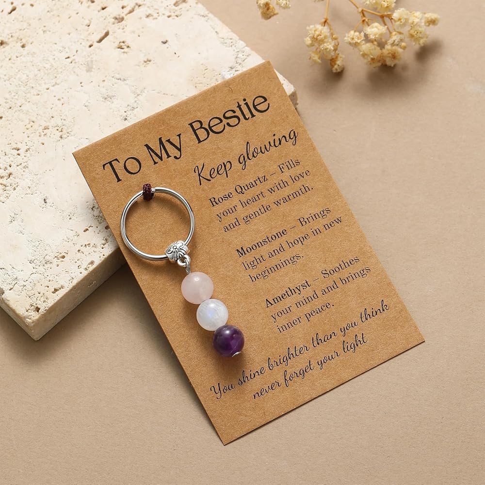 Meaningful Sister Gifts – Thoughtfully designed keychain featuring Rose Quartz, Moonstone and Amethyst, perfect as sister birthday gifts that speak to the heart.