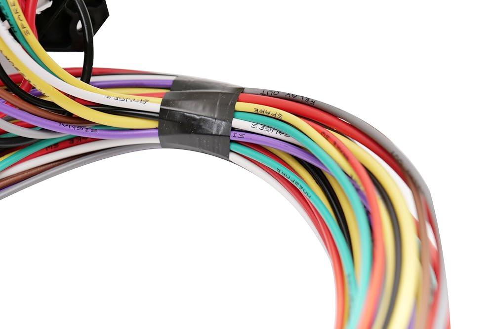Wire attribute: 8 circuit wiring harness kit has the following circuits: brake switch, battery, wipers, hazard lights, signal switch, relay out, gauge, cluster. 12 volts line voltage