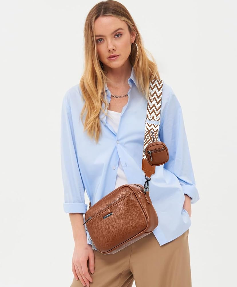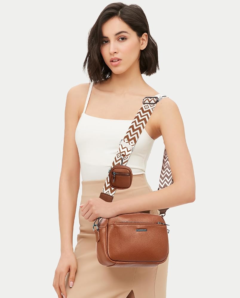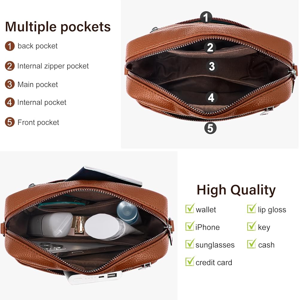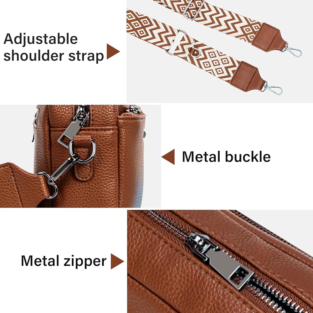 جودة أعلى: هذه المحفظة الصغيرة التي تمر بالجسم مصنوعة من جلد البولي يوريثان عالي الجودة، ناعمة وسهلة التنظيف. مع ملحقات الأجهزة عالية الجودة، جودة متينة وممتازة!