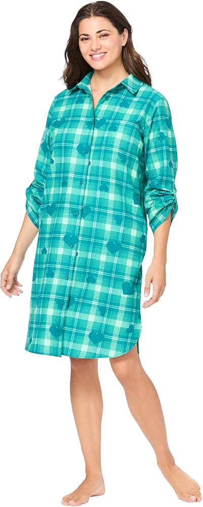 Our collection of sleep flannels is the softest, lightest anywhere. Each is washed to perfection and never pulls, binds or rides up. Button frontbr>Button tab convertible sleevesbr>Shirt collarbr>Side pocketsbr>Chest pocketbr>Shirttail hembr>39" lengthbr>Cotton/flannel; importedbr>Machine wash