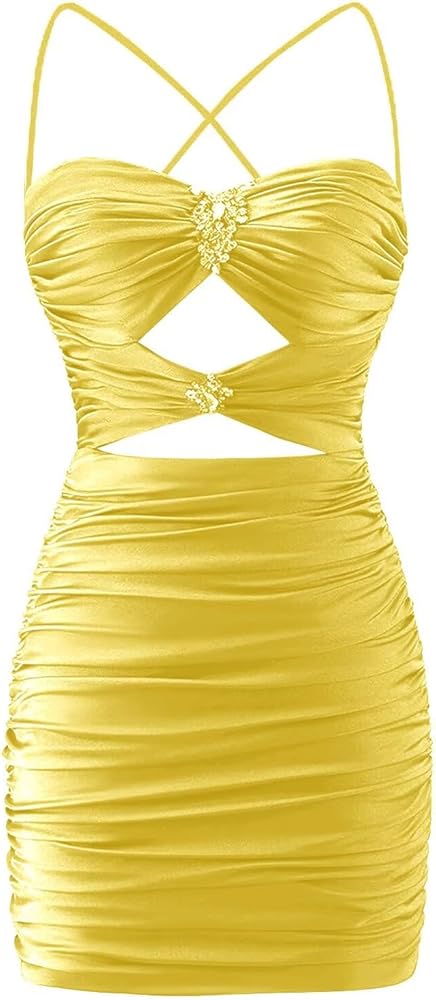 Homecoming Dresses for Teens 2025 Short Spaghetti Straps Satin Ruched Tight Corset Beaded Prom Gown.