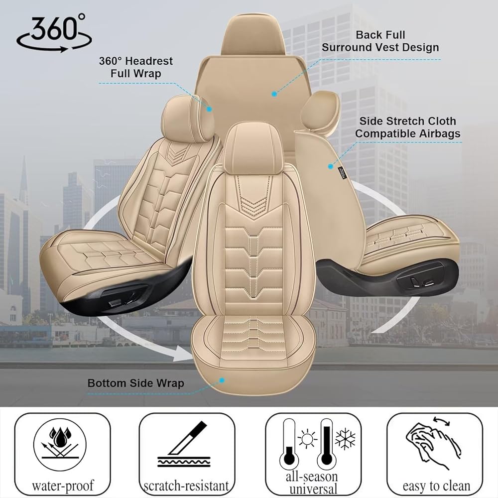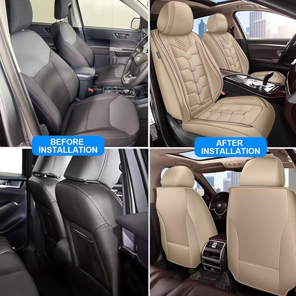 🍀【جلد صناعي مسامي】يعتمد غطاء المقعد على تقنية اللكم عالية الجودة، وفتحات الهواء مصممة لجعل مقعد سيارتك يشع الحرارة والرطوبة بشكل كامل. تبديد قوي للحرارة، مناسب لجميع المواسم.